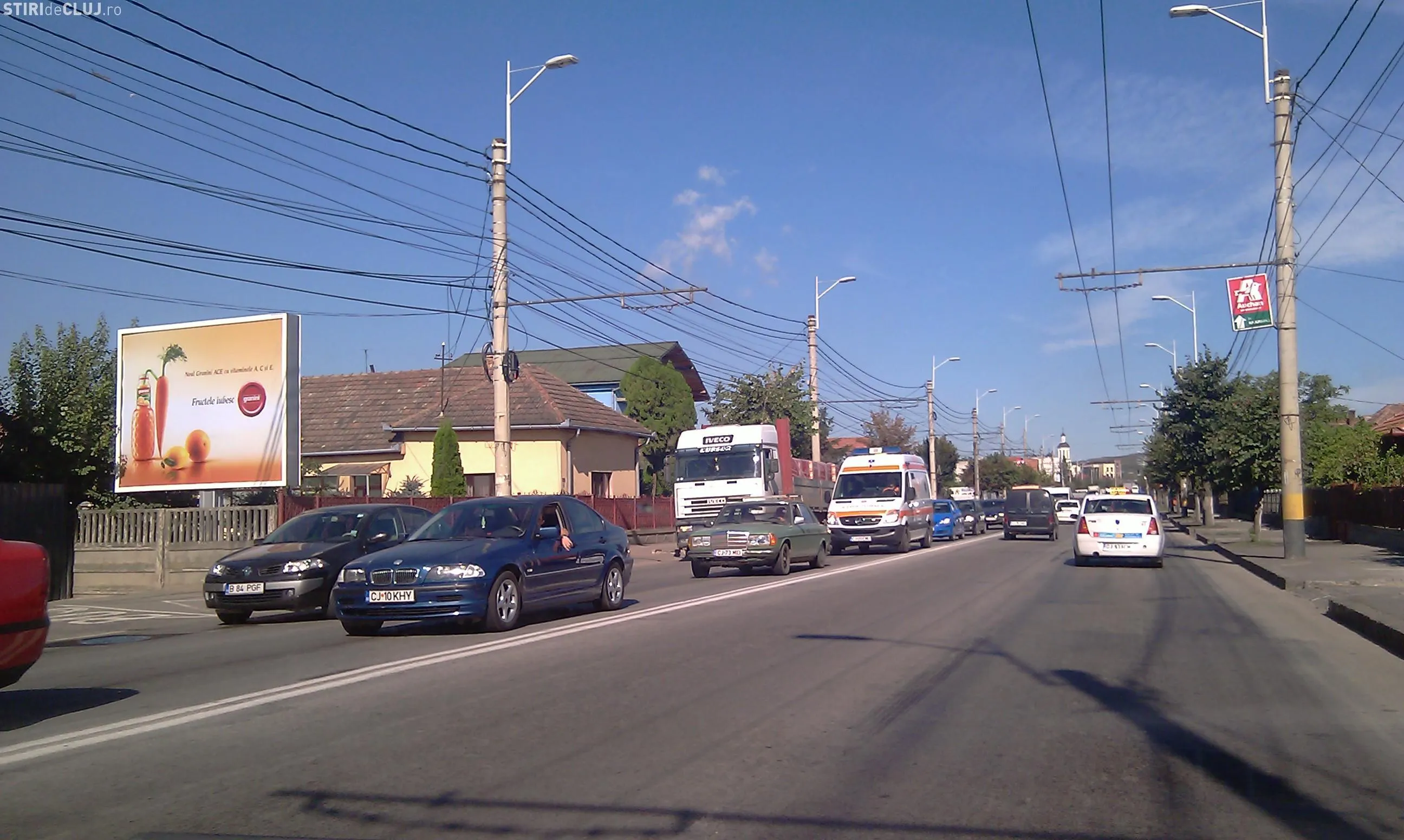 Traficul pe Traian Vuia, intre Aeroportul International Cluj si statia de benzina OMV, este ingreunat.