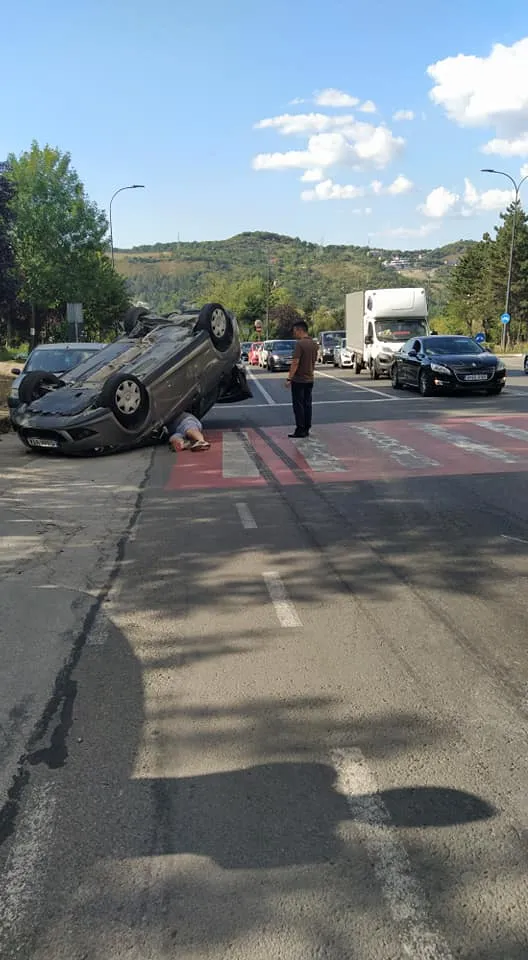 In urma impactului, autoturismul condus de barbatul de 60 ani, s-a rasturnat, acrosand un alt autovehicul care se afla stationat.