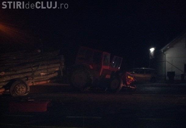 Accident lângă Dej! Un tractor care transporta lemne implicat în coliziune - FOTO și VIDEO