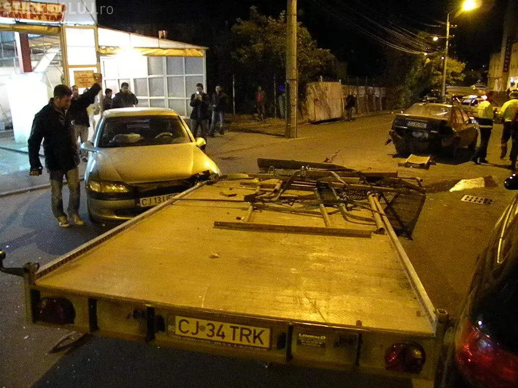 Soferul unui autoturism marca Opel, care circula dinspre strada Otetului spre Calea Manastur, a lovit remorca tractata de o masina, care circula din sens opus. Impactul a fost violent, iar masina care tracta remorca a ramas fara partea din spate a autoturismului.