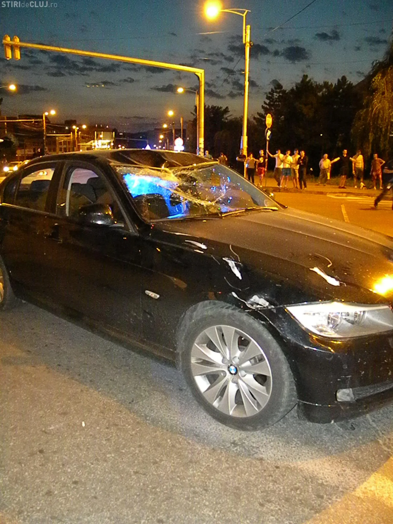 Impactul a fost violent, parbrizul BMW -ului fiind spart și bicicleta ruptă în două.