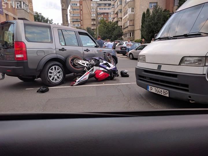 Accident lângă Iulius Mall. Un șofer s-a urcat peste o motocicletă - FOTO