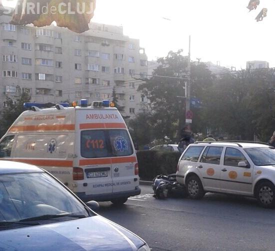Un motociclist a intrat sub un taximetru pe Bulevardul 21 Decembrie 1989, în zona Lidl, miercuri dimineața, în jurul orei 8.00.