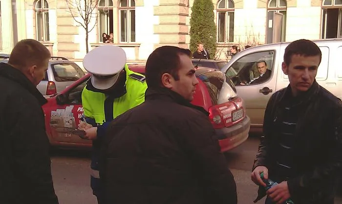 Accident langa Teatrul National din Cluj. Un tanar a fost luat pe capota de un VW - FOTO
