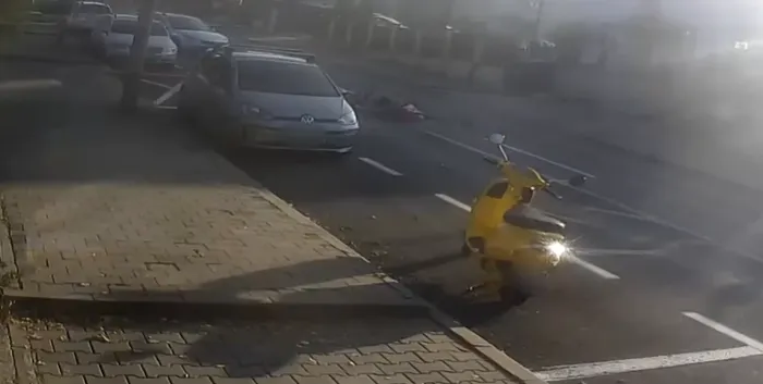 Accident LIVE CAMERE de SUPRAVEGHERE în Cluj: Livrator pe bicicletă, „catapultat” de un șofer care a ieșit din parcare fără să se asigure VIDEO