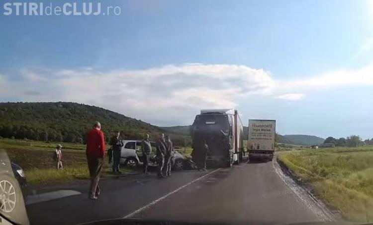 Din imaginile trimise de un cititor Știri de Cluj reiese că un șofer a pierdut controlul asupra volanului și a intrat direct sub un Tir.