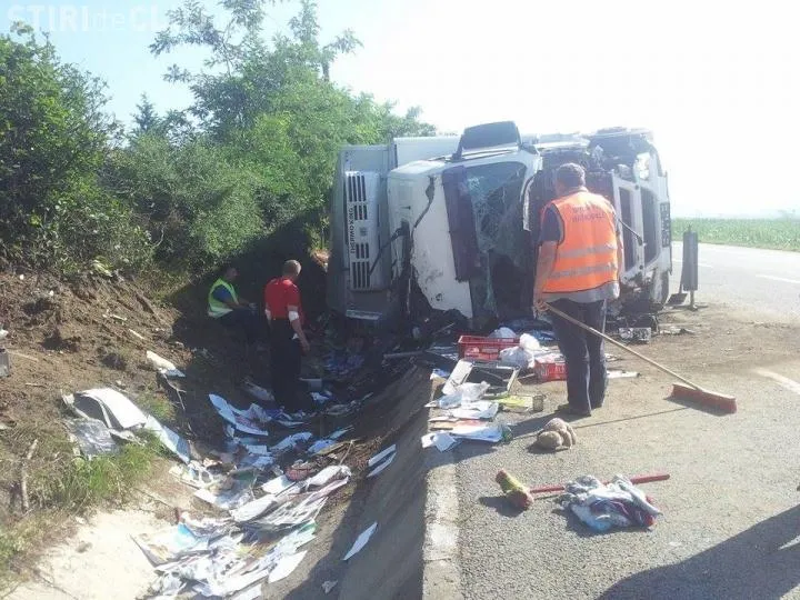 Șoferul autovehicului de mare tonaj a tras de volan dreapta, pentru a evita impactul, răsturnându-se în santul de pe marginea soselei.