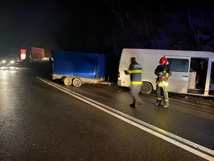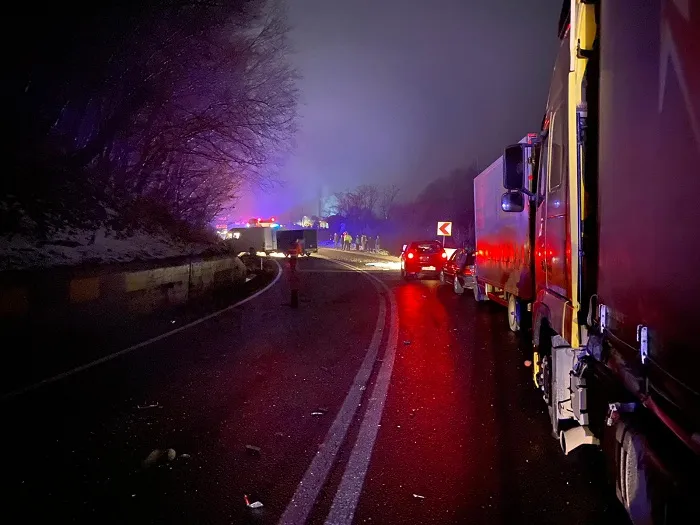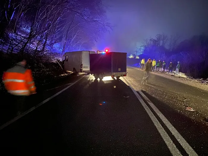 Într-o curbă periculoasă la dreapta, remorca acestuia a derapat, pătrunzând pe sensul opus de mers, unde ar fi intrat în coliziune cu o autoutilitară, condusă de un bărbat de 46 de ani, din județul Neamț. În urma impactului, autoutilitara a părăsit partea carosabilă.