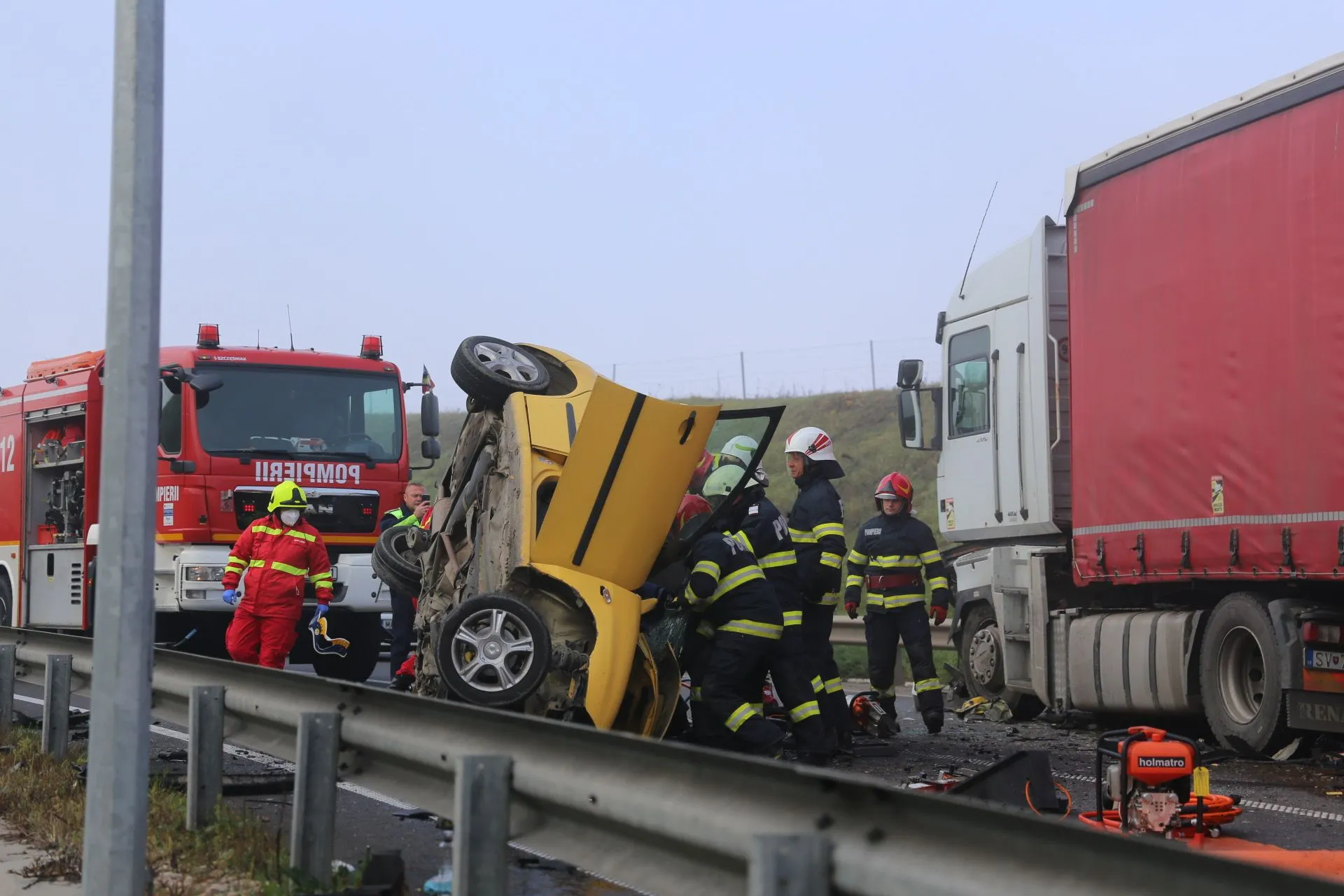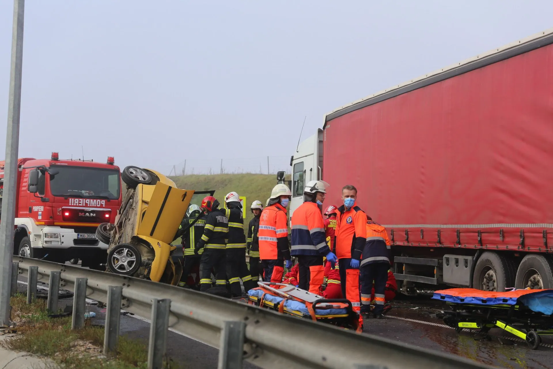 Accident MORTAL pe Autostrada Transilvania! O mașină s-a răsturnat și sunt trei victime - FOTO