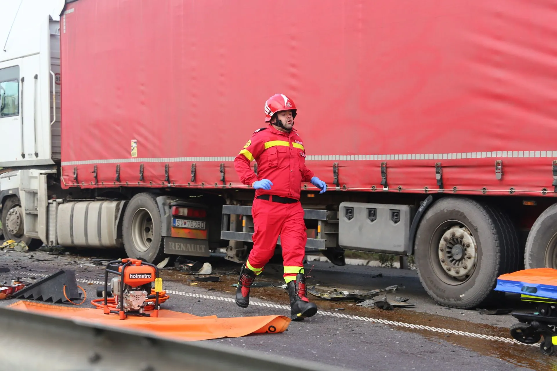 ISU Cluj a fost alertat pentru a interveni la un accident auto produs între un autoturism și un autotren la urcare pe A3 dinspre sens giratoriu Nadasel către Gilău.