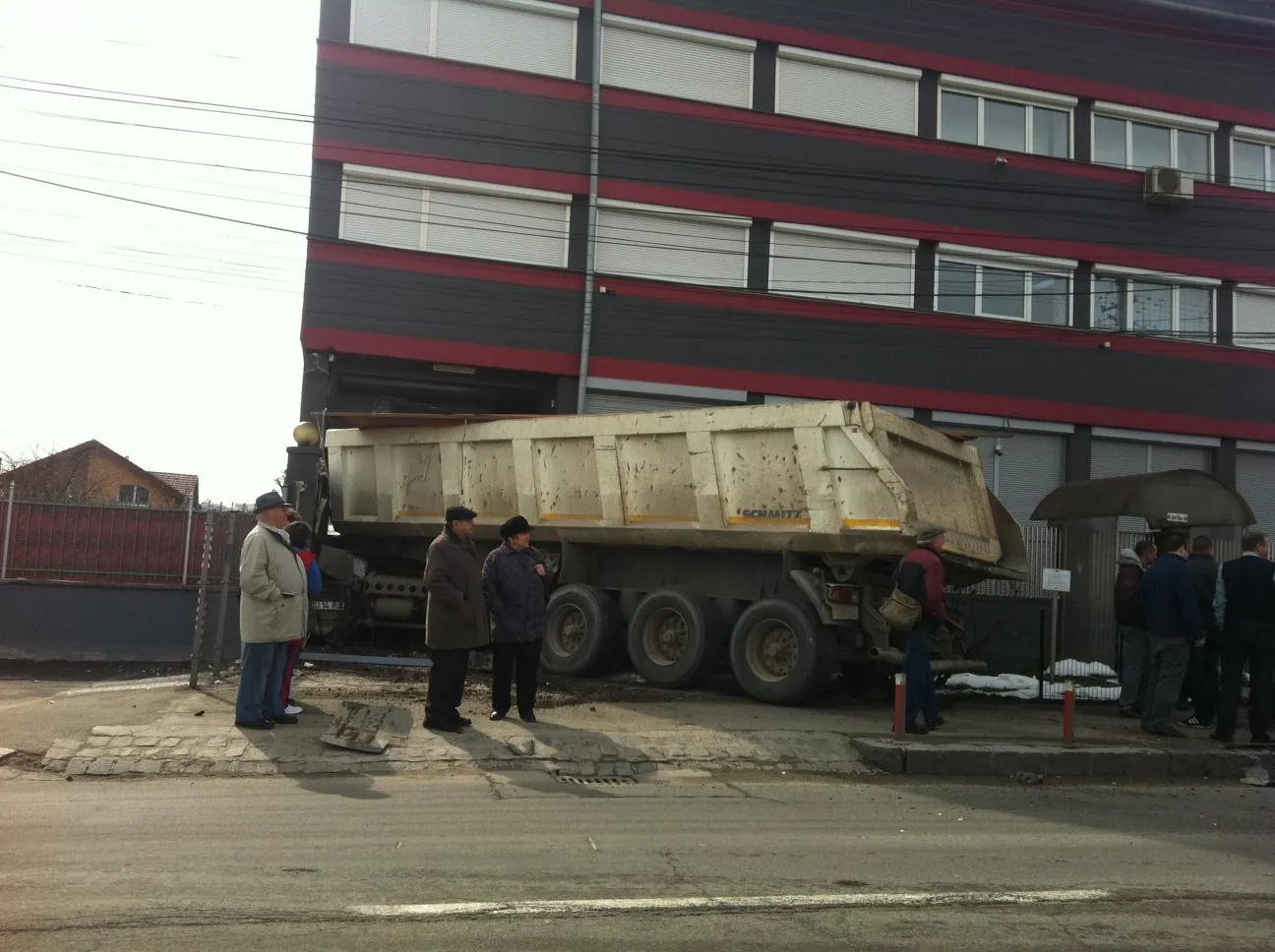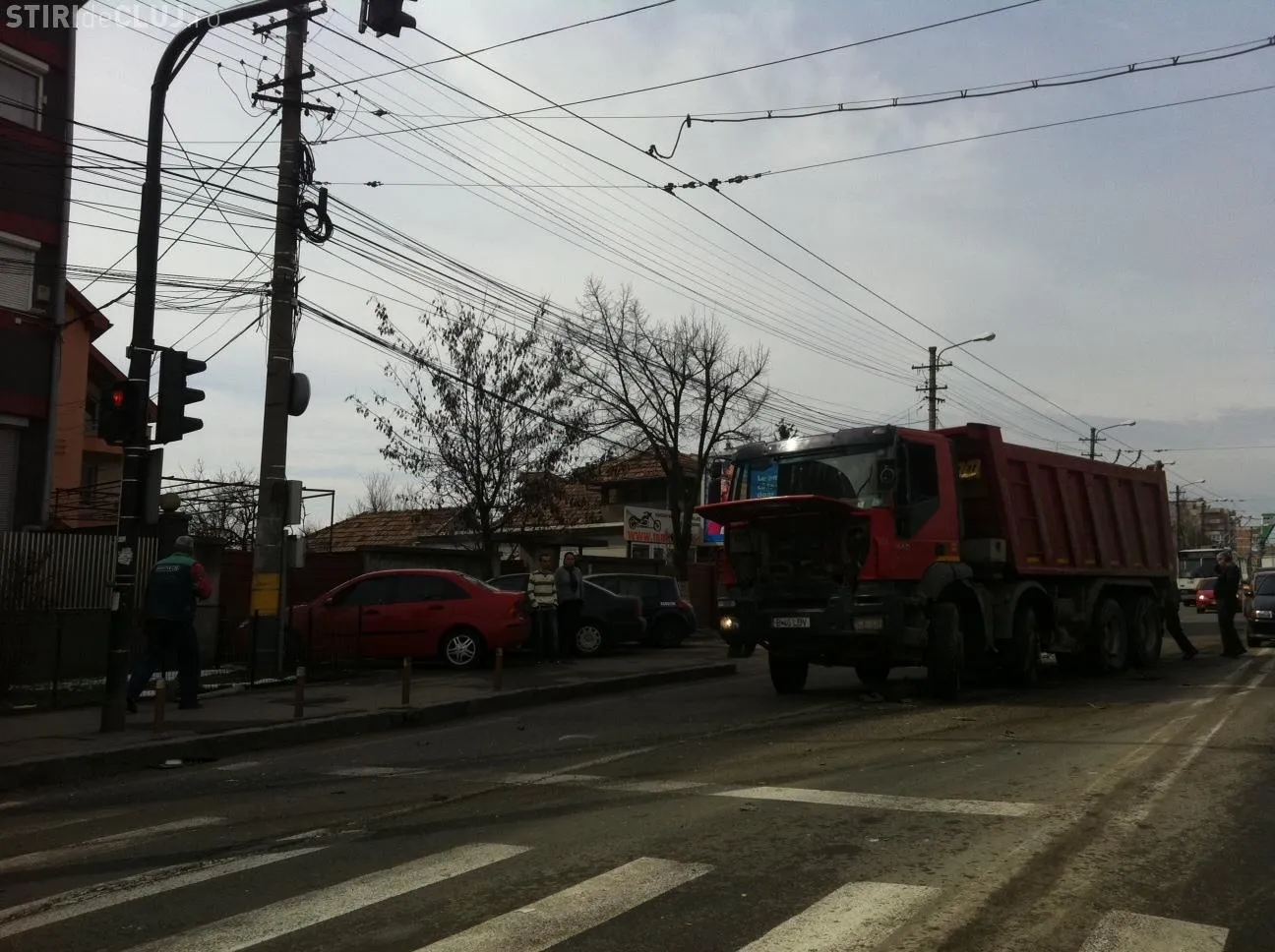 Accident pe Aurel Vlaicu! O basculantă a intrat într-un imobil. Șoferul avea viteză - FOTO