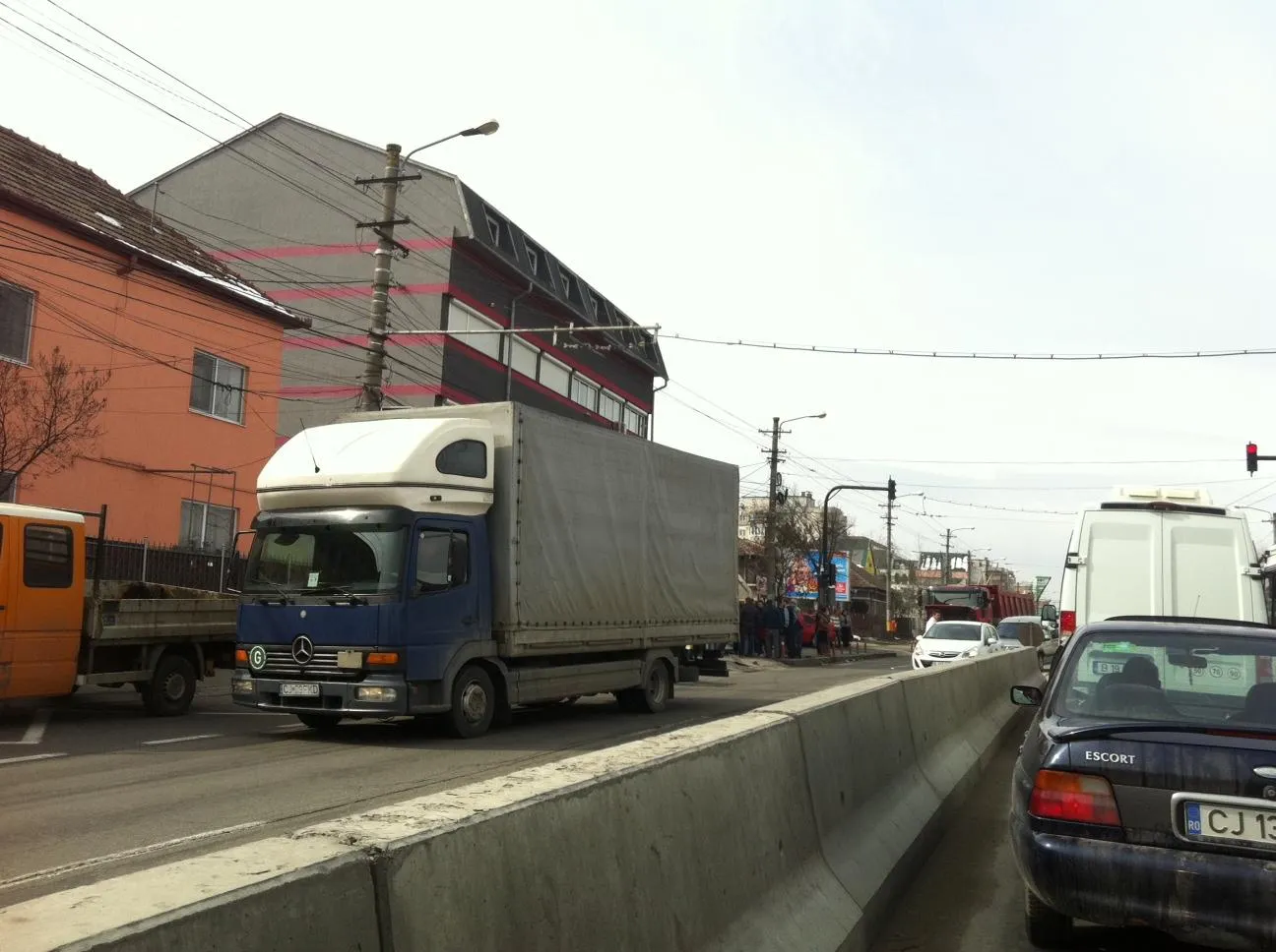 ”Au fost două camioane implicate. Unul îl tracta pe celălalt. Primul a pus frână bruscă și s-a rupt ștanga cu care cel din spate era tractat. Camionul acesta a fost proiectat într-un imobil. Sunt pagube materiale”, a spus Anca Purdea, purtătorul de cuvânt al IPJ Cluj.