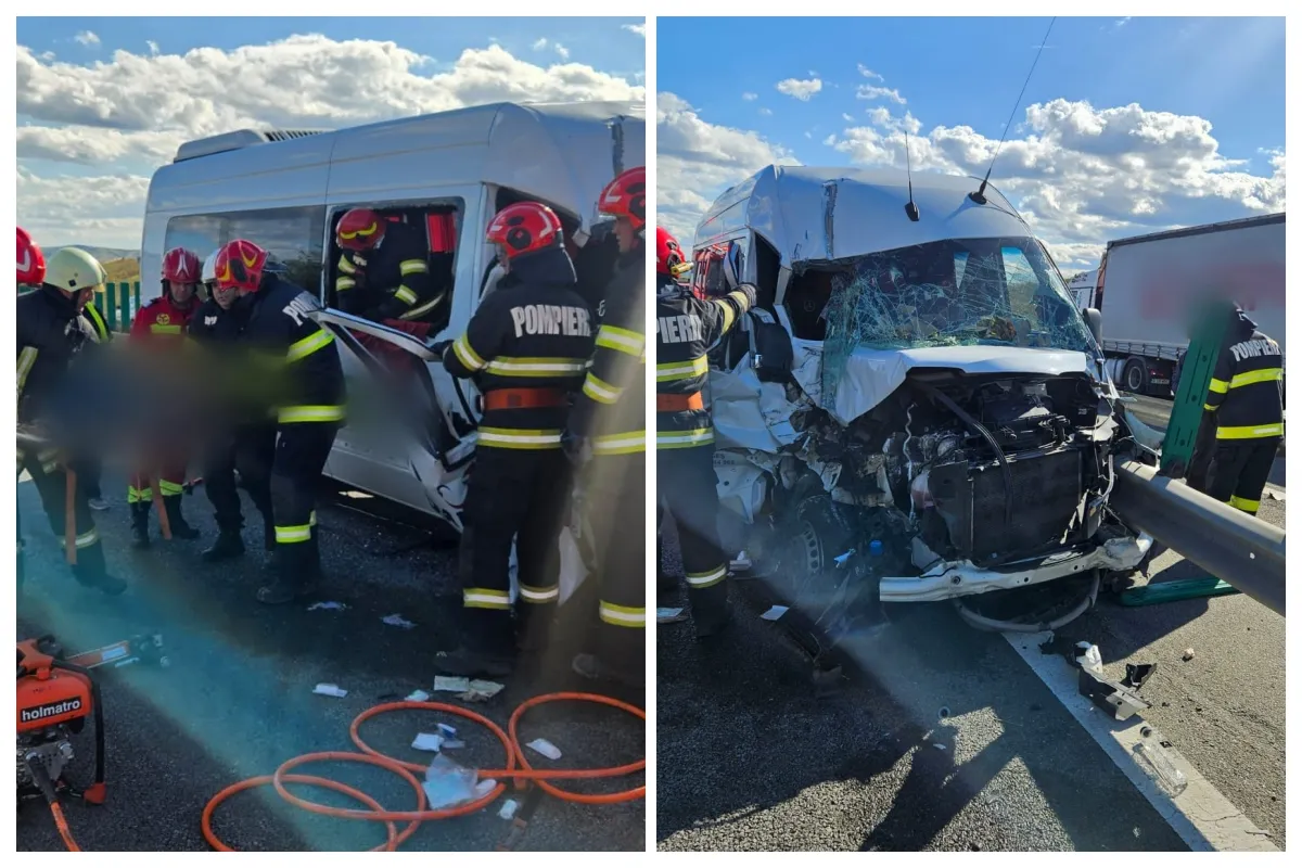 Accident pe Autostrada A10, pe sensul Alba Iulia-Turda! Un microbuz s-a izbit de un TIR. Două persoane, transportate de urgență la spital FOTO