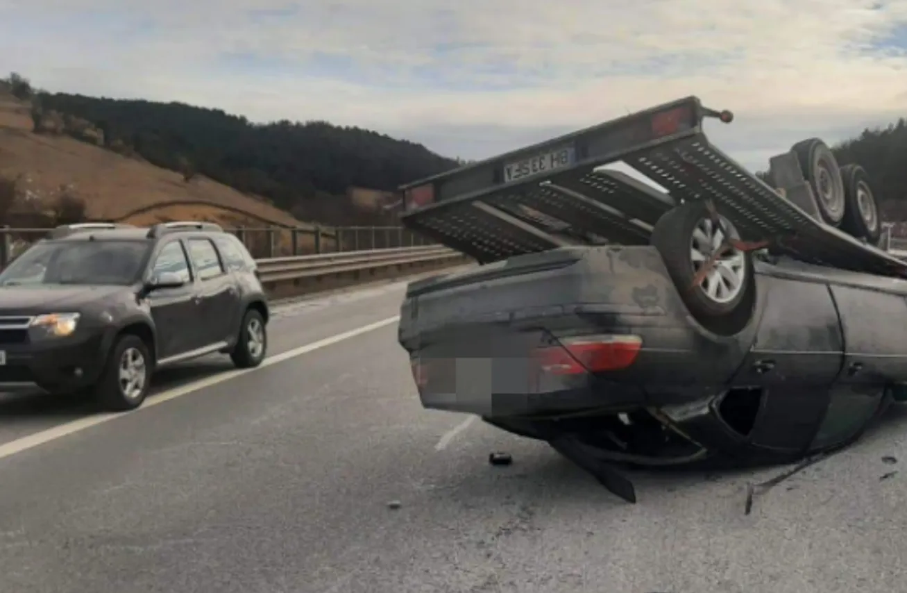 Accident pe Autostrada A3 Transilvania: Doi copii și doi adulți transportați la spital, după ce o mașină s-a răsturnat FOTO