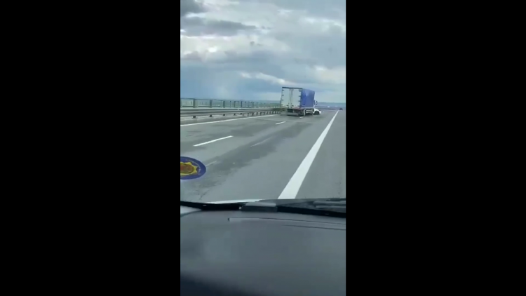 Accident pe Autostrada Transilvania! Autoturism târât zeci de metri de un camion - VIDEO
