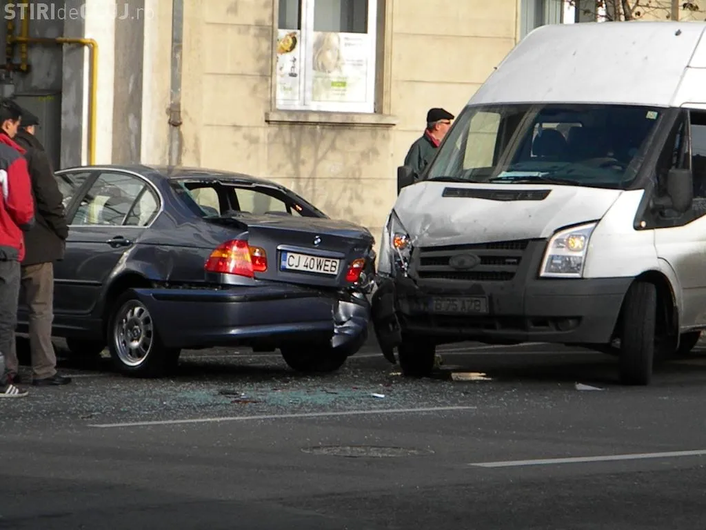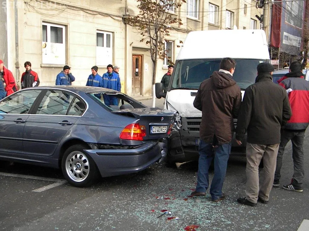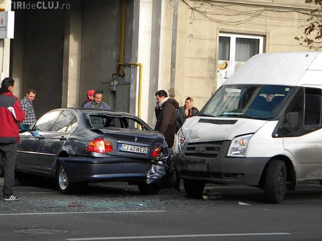 Un autoturism marca BMW, care circula dinspre cartierul Marasti si a incercat sa vireze dreapta pentru a intra in curtea bancii, a fost lovit din spate de autovehicul de transport.