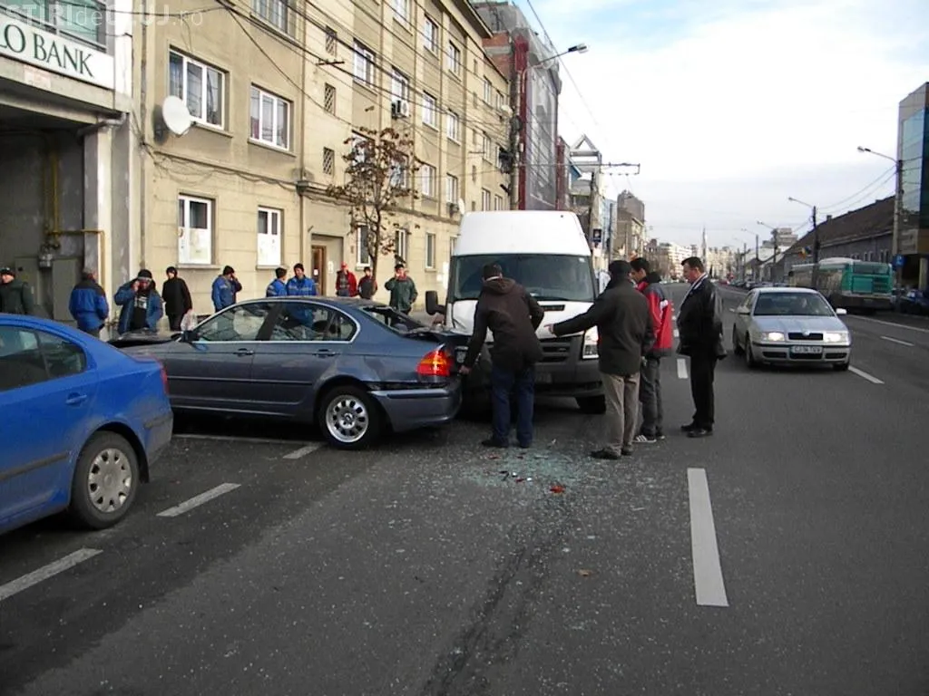Accident pe Bulevardul 21 Decembrie in dreptul Intesa Sanpaolo Bank FOTO si VIDEO