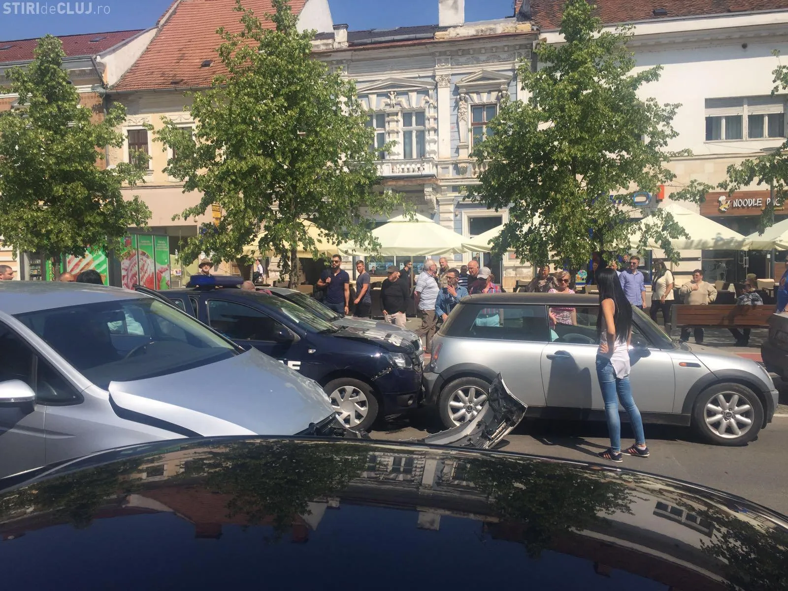 Conform martorilor, șoferul unui autoturism Mini Cooper a frânat brusc pentru a intra într-un loc de parcare văzut în ultima clipă și a fost lovit din spate de o mașină de la ANAF. Cea de-a doua mașină a fost și ea lovită din spate de un alt șofer, care a tras puternic de volan când a observat incidentul, dar nu a putut să evite impactul.