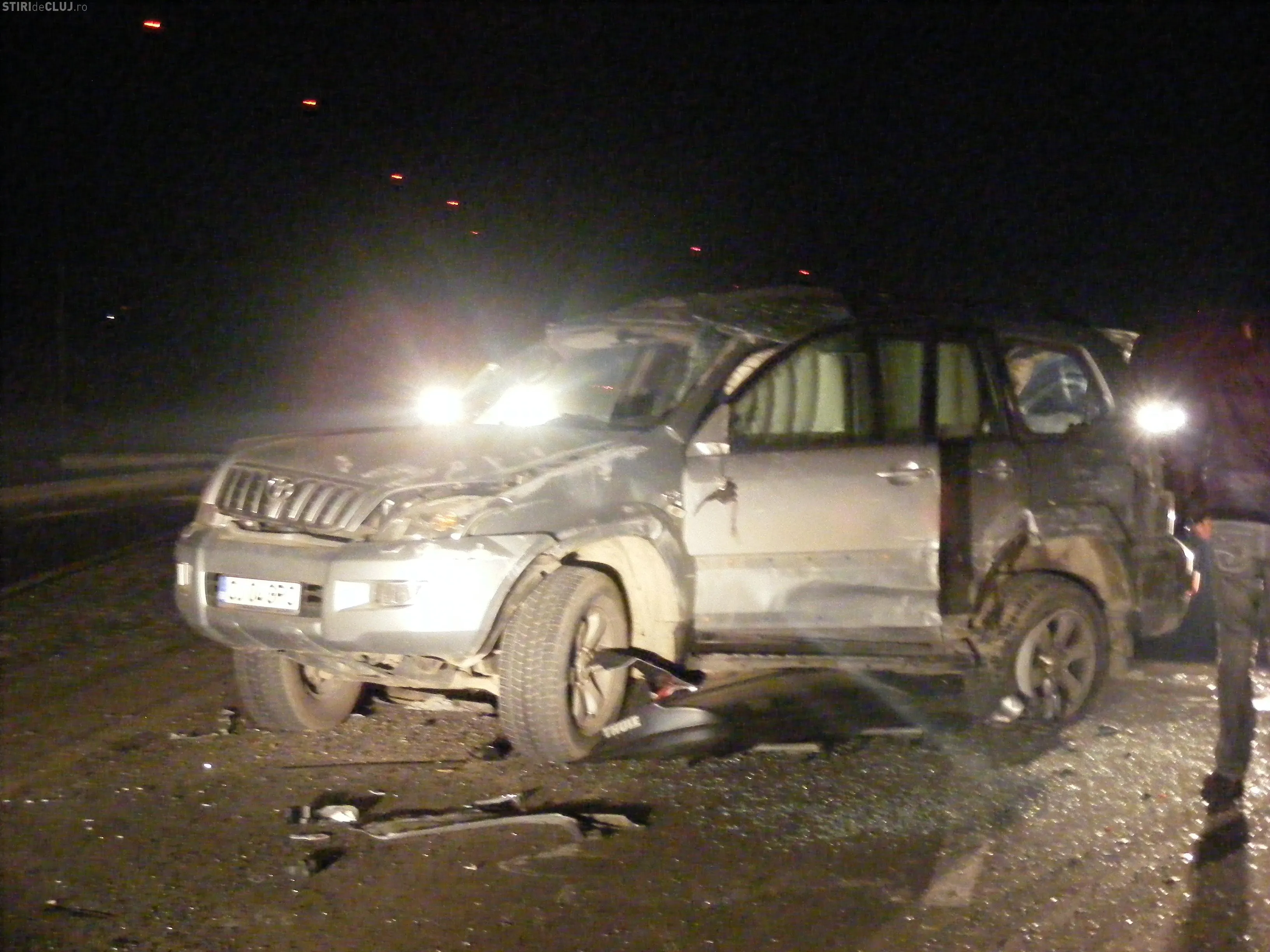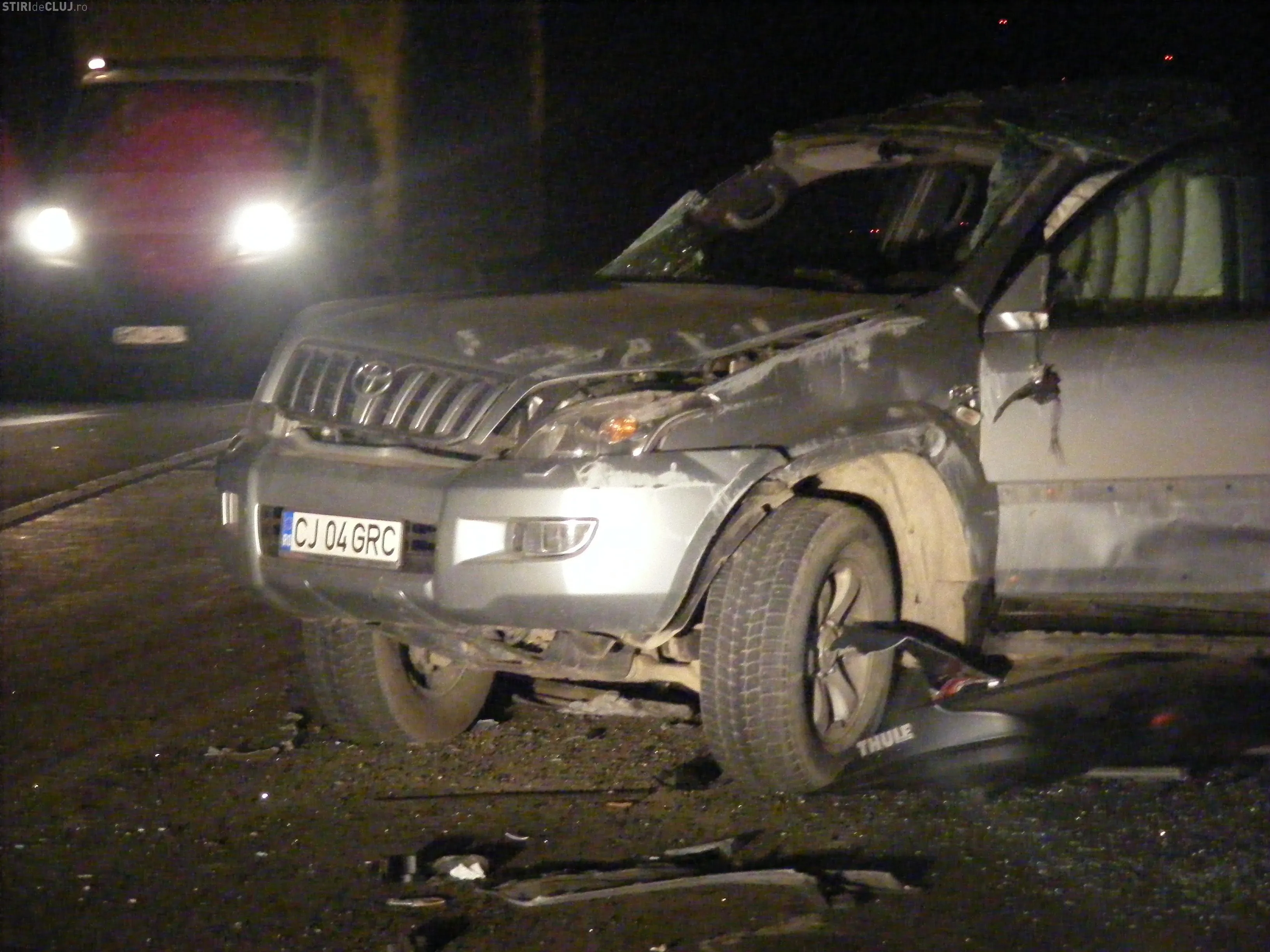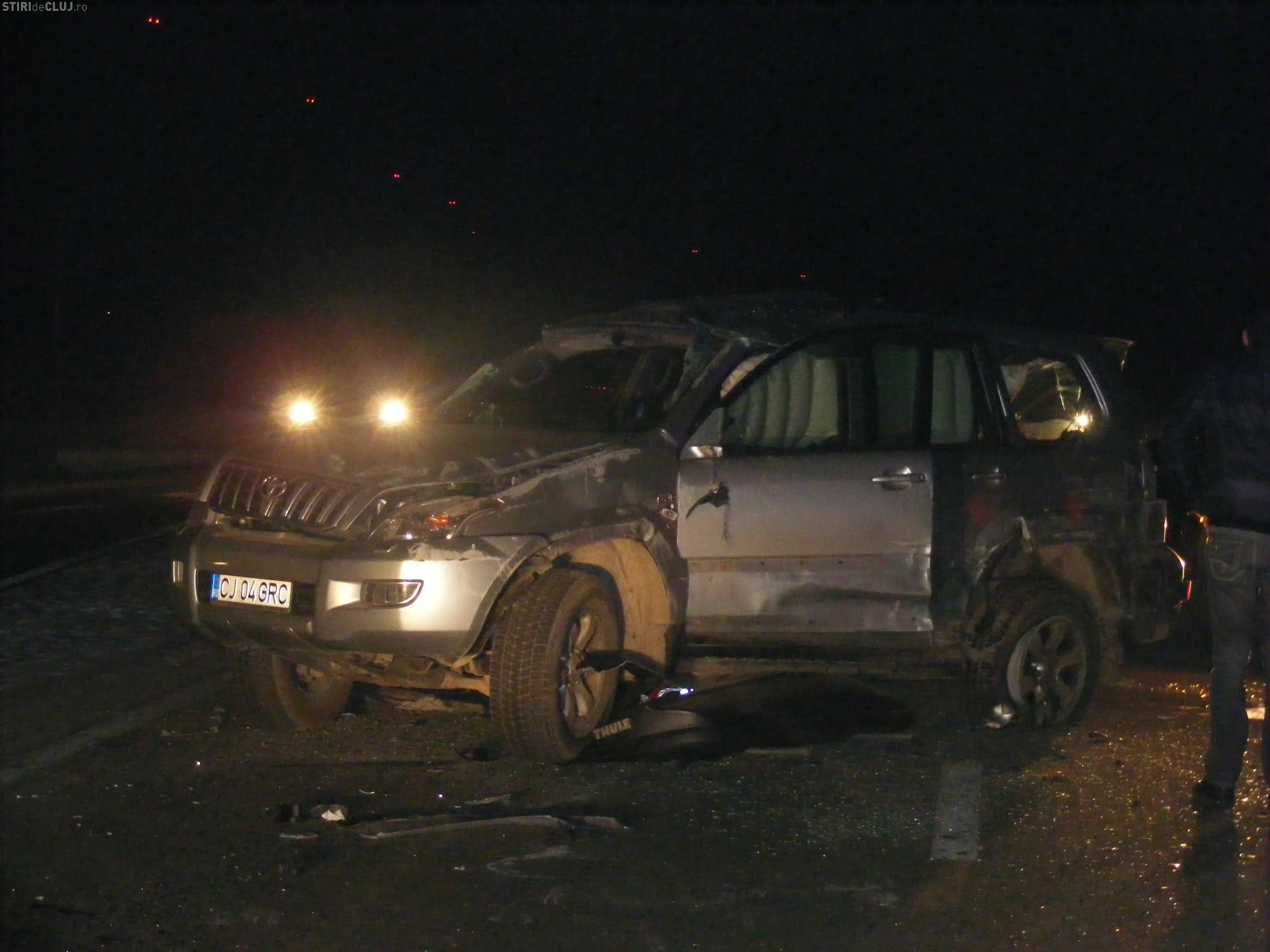Accidentul a avut loc in jurul orei 17.30. Din primele informatii rezulta ca autoturismul de teren venea de la Apahida si, la intersectia care duce spre fabrica Emerson, a lovit cu partea stanga un autoturism Volkswagen. In urma impactului, ultima masina a fost proiectata in santul de pe marginea drumului, rasturnandu-se.