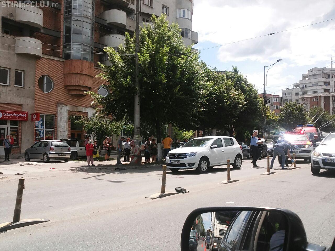 Accident pe Bulevardul Nicolae Titulescu! Un șofer grăbit a lovit un scuter și alte două mașini - FOTO