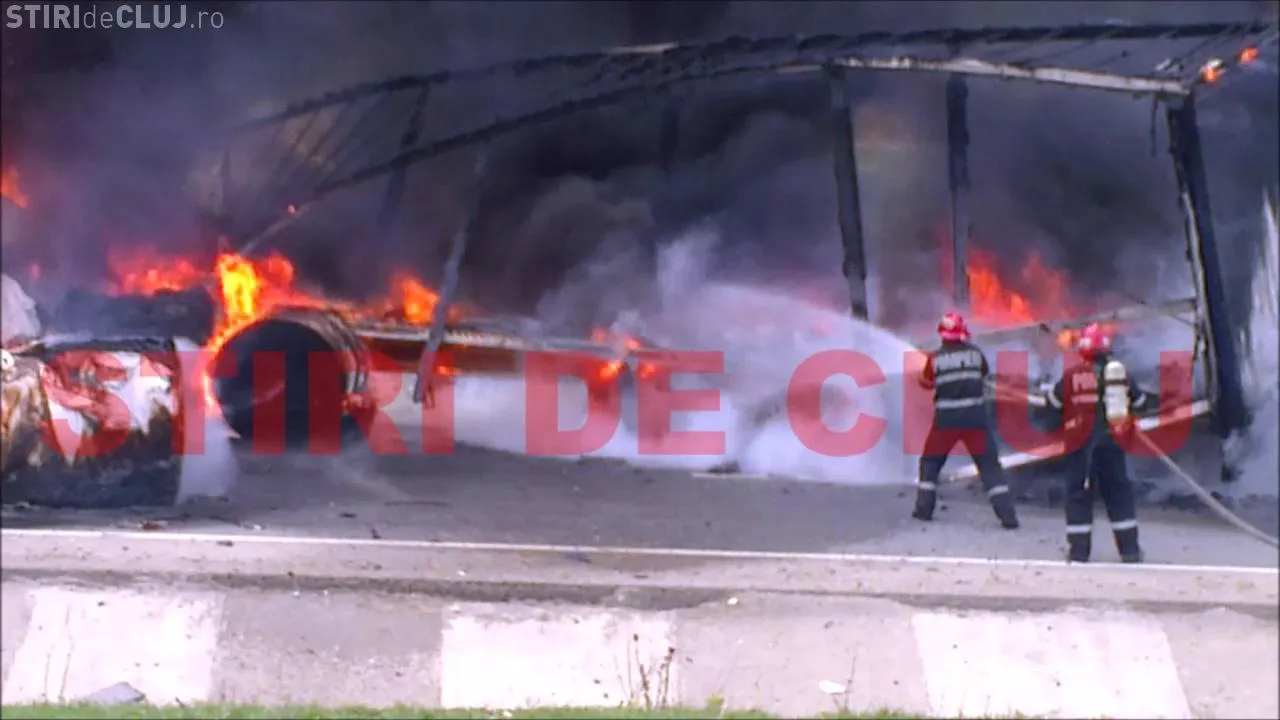 Unul dintre autotrenuri, care circula spre Apahida, a intrat pe contrasens și s-a lovit frontal cu un alt TIR. Mașinile au fost curprinse de flăcări, iar șoferii nu au putut să iasă.