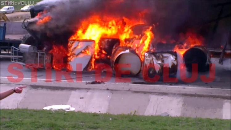 Accident pe centură Apahida - Imagini cu cele două TIR -uri în flăcări - VIDEO ȘOC