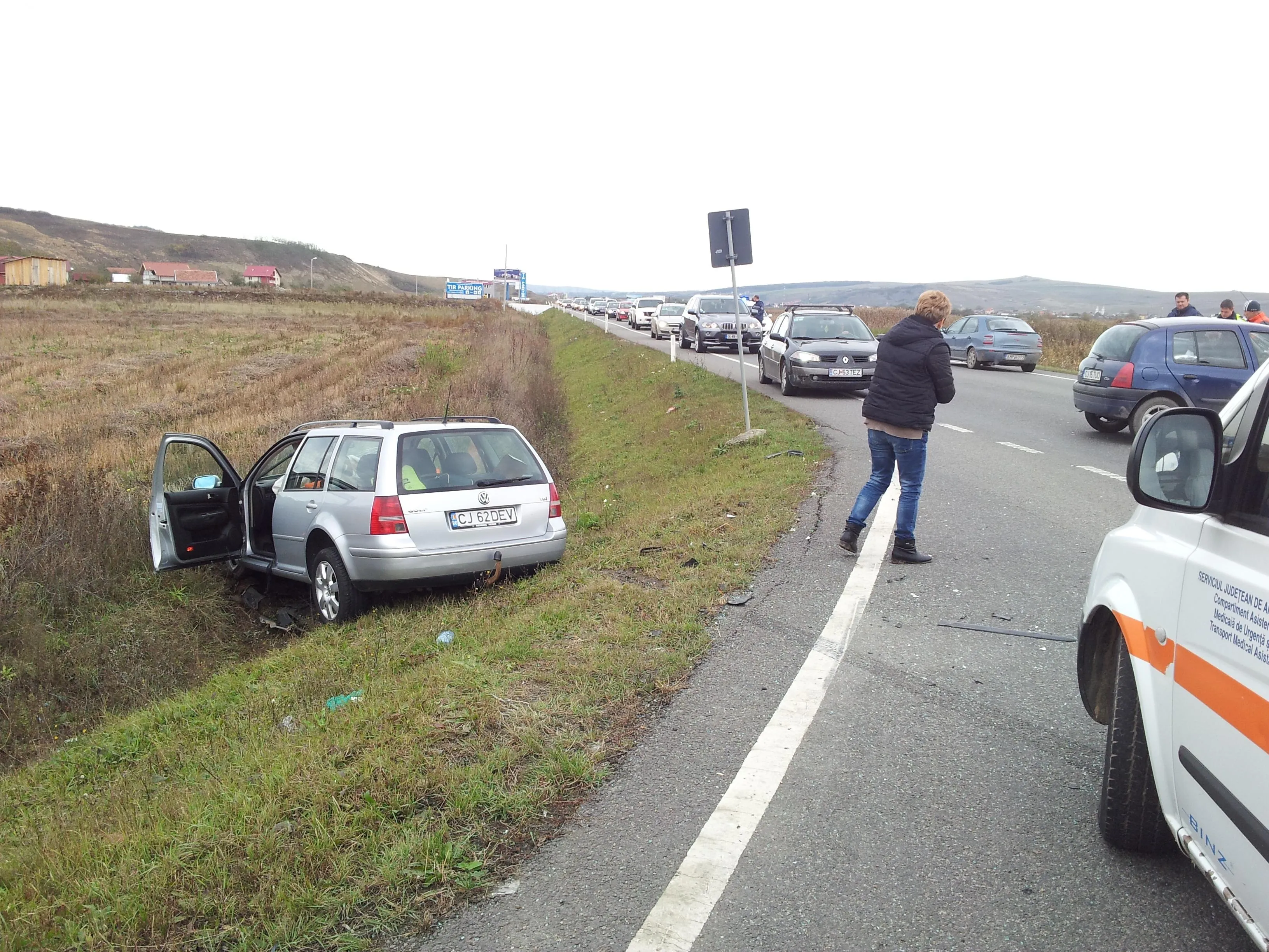 Accident pe centura Apahida! O mașină a fost ”împinsă” de pe drum - FOTO