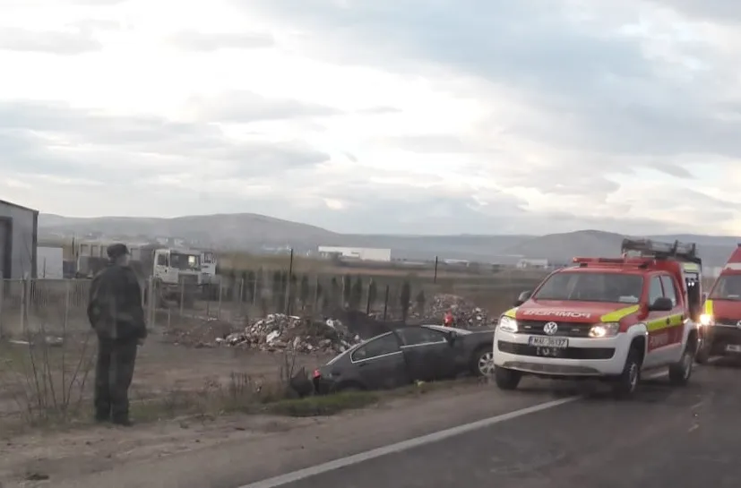 Accident pe centura Apahida! O mașină a fost proiectată de pe drum - FOTO