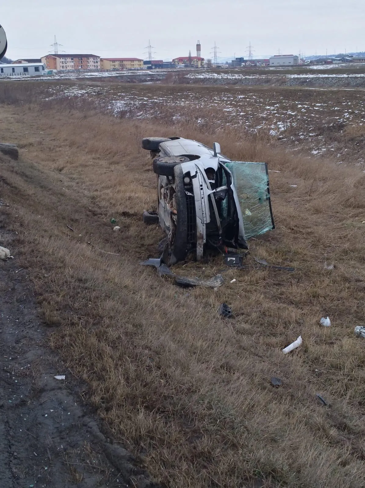 Accident pe centura Apahida. O mașină s-a răsturnat - FOTO