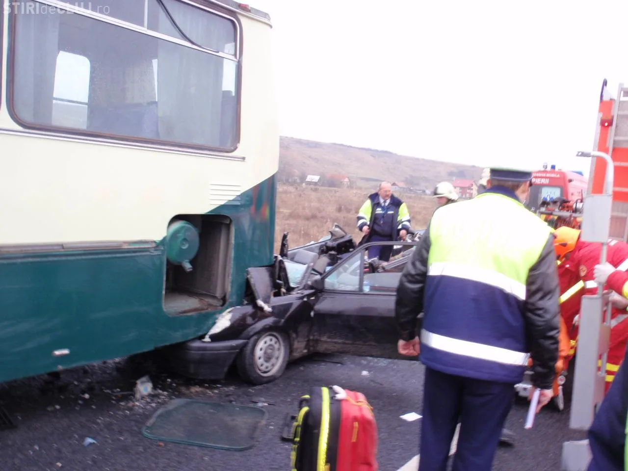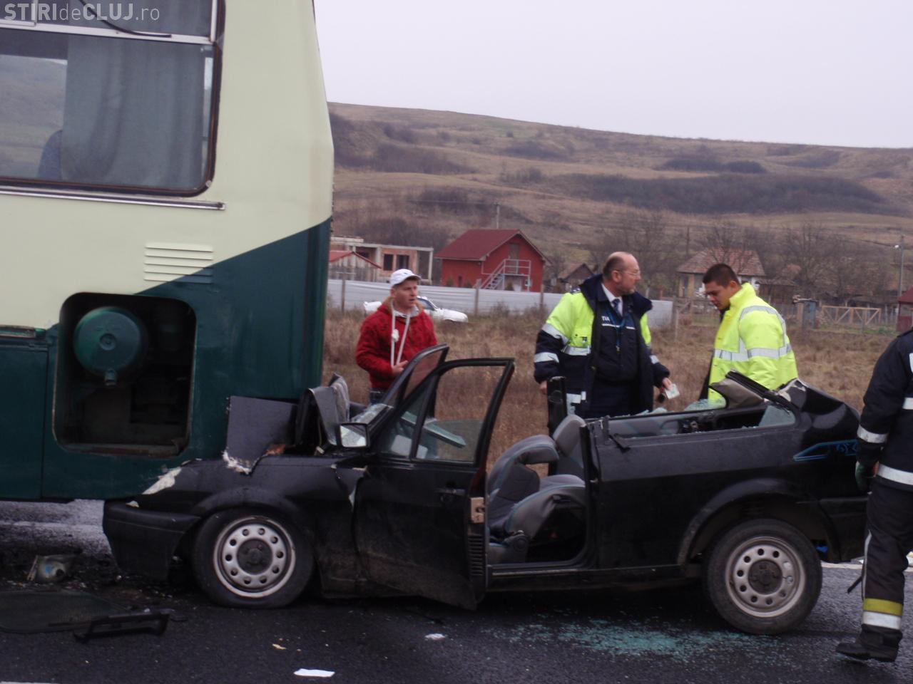 "Un autoturism mic si un autobuz au fost implicate intr-o coliziune. Doua persoane au fost duse la spital de catre doua ambulante SMURD si doua au fost duse la UPU Cluj cu alte mijloace de transport", a declarat pentru Stiri de Cluj locotenentul Andrei Biris, purtatorul de cuvant al Inspectoratului pentru Situatii de Urgenta Cluj (ISU).