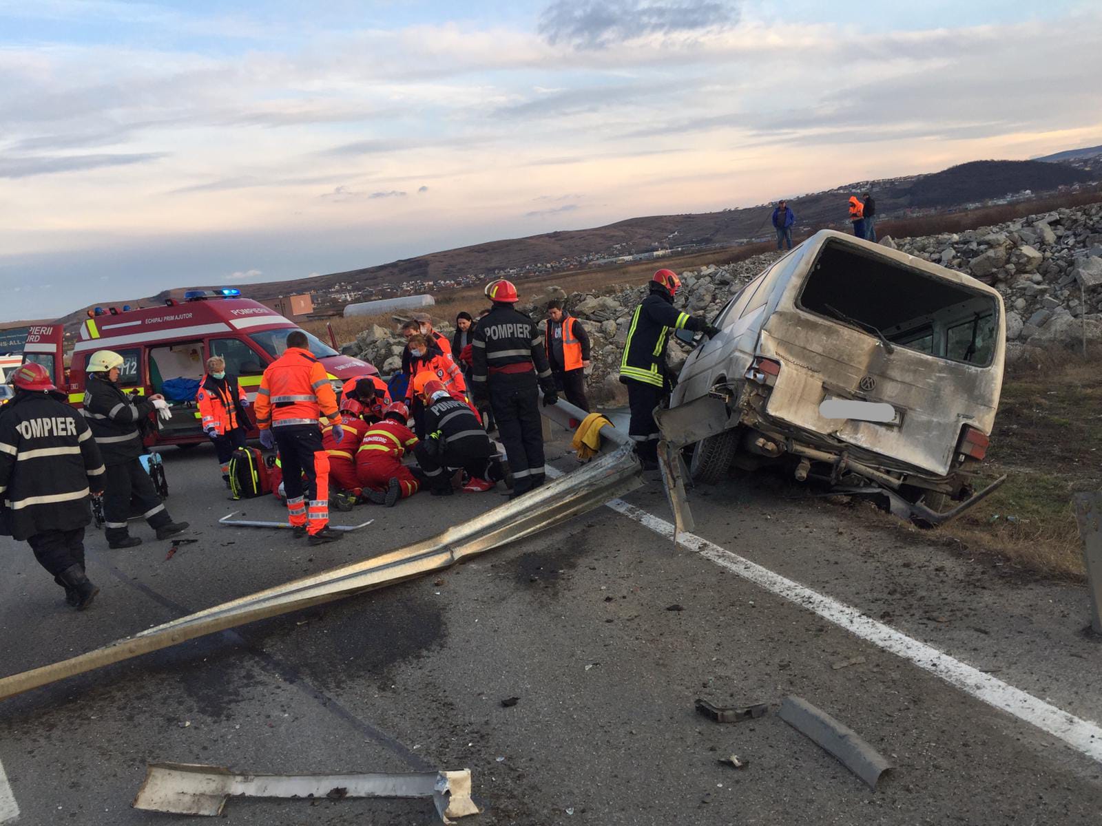 Din primele informații, un conducător auto a ieșit cu o autoutilitară în afara carosabilului, trecând prin parapetul de pe marginea șoselei.