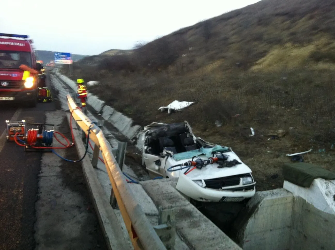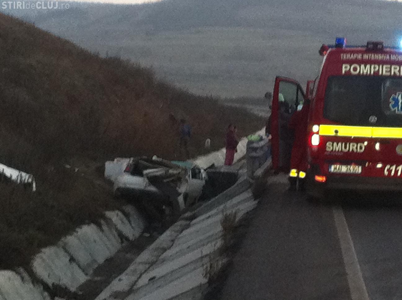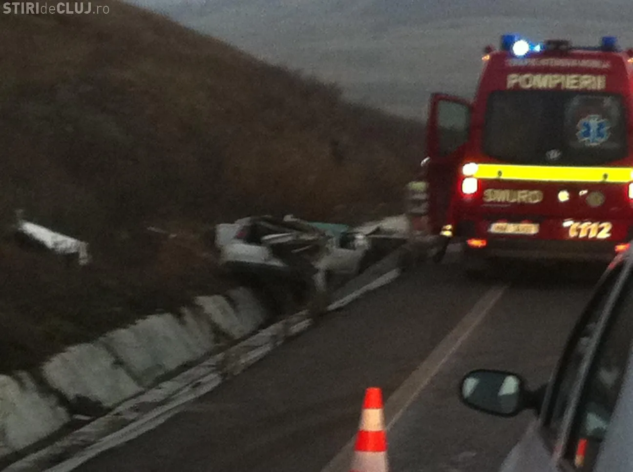 Conform polițiștilor, șoferul unu VW care circula dinspre Vâlcele spre Apahida a abordat cu viteză o curbă la dreapta, a ajuns pe contrasens unde s-a rotit de câteva ori, după care a plonjat în șanțul de beton de pe marginea centurii ocolitoare a Clujului.