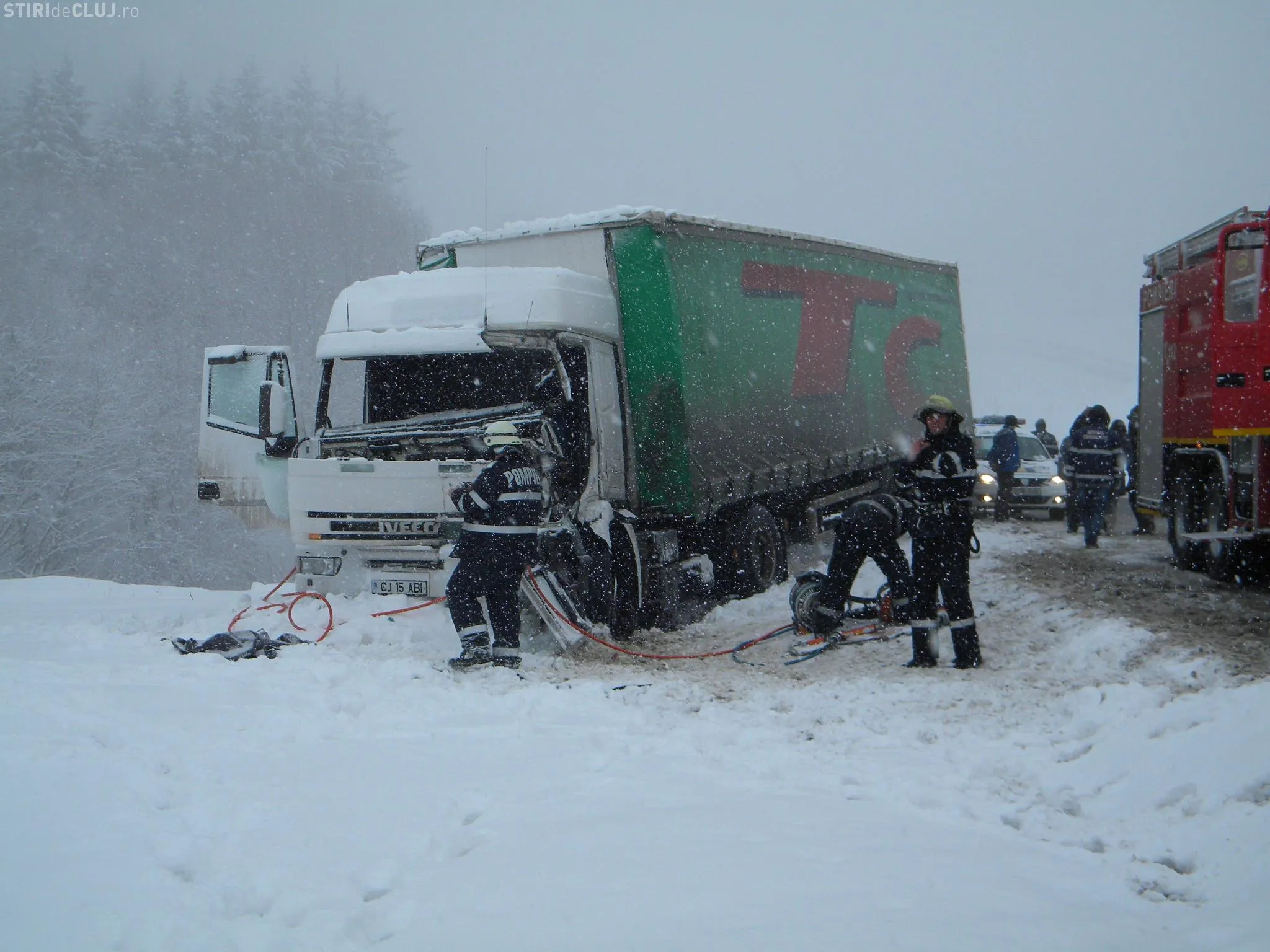 "Este vorba de doua camioane care mergeau unul in spatele celuilalt. Cel din spate a intrat in cel din fata iar soferul este incarcerat. Acum se lucreaza la descarcerarea lui", a declarat Anca Purdea, purtator de cuvant al IPJ Cluj, la putin timp dupa producerea accidentului.
