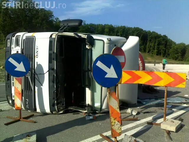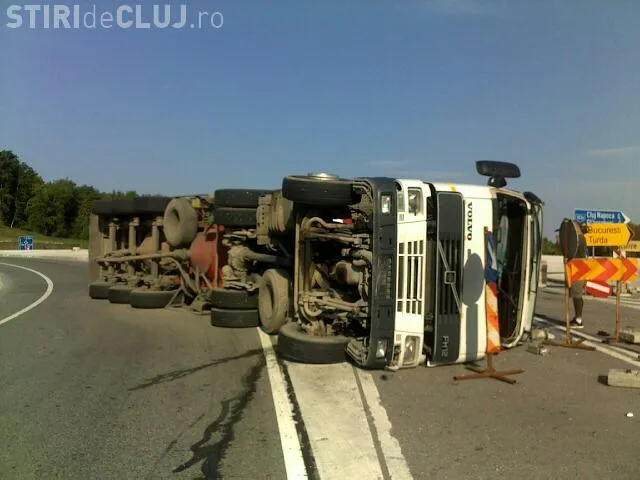 O cisterna incarcata cu beton s-a rasturnat pe Centura Valcele - Apahida, in zona viaductului Gheorgheni, marti dimineata, in jurul orei 7.15.