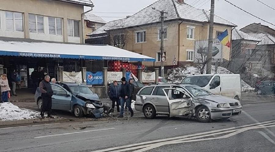 Un autoturism Skoda și un Logan au intrat în coliziune, dar în ciuda impactului violent nimeni nu a fost rănit.