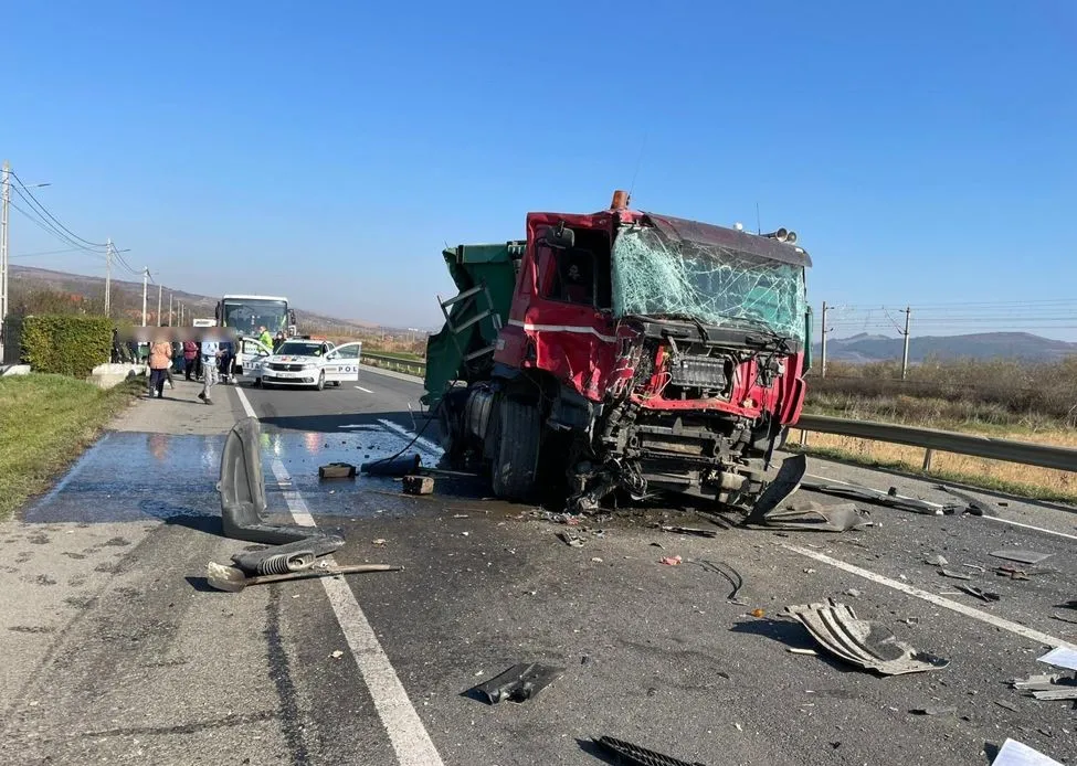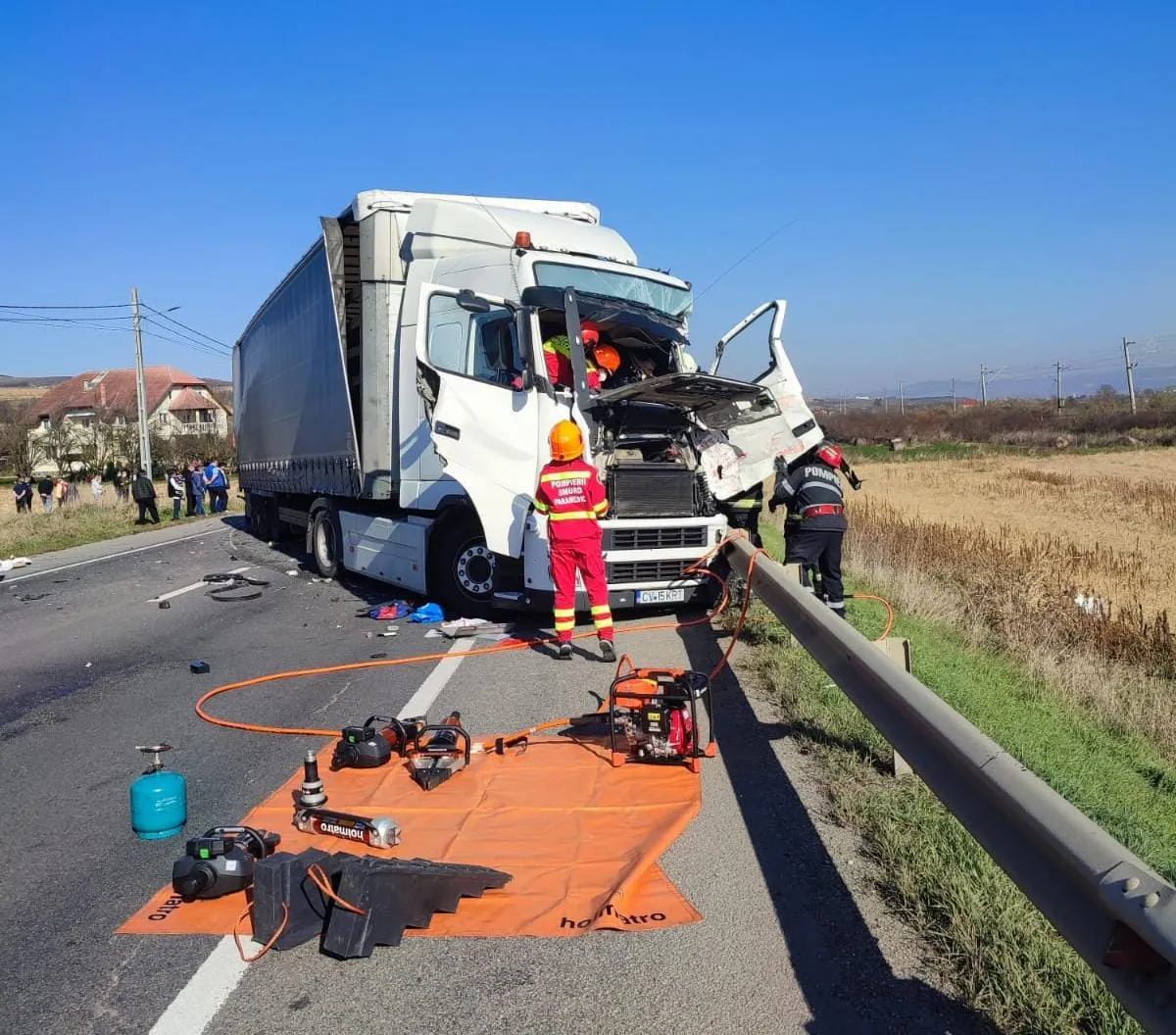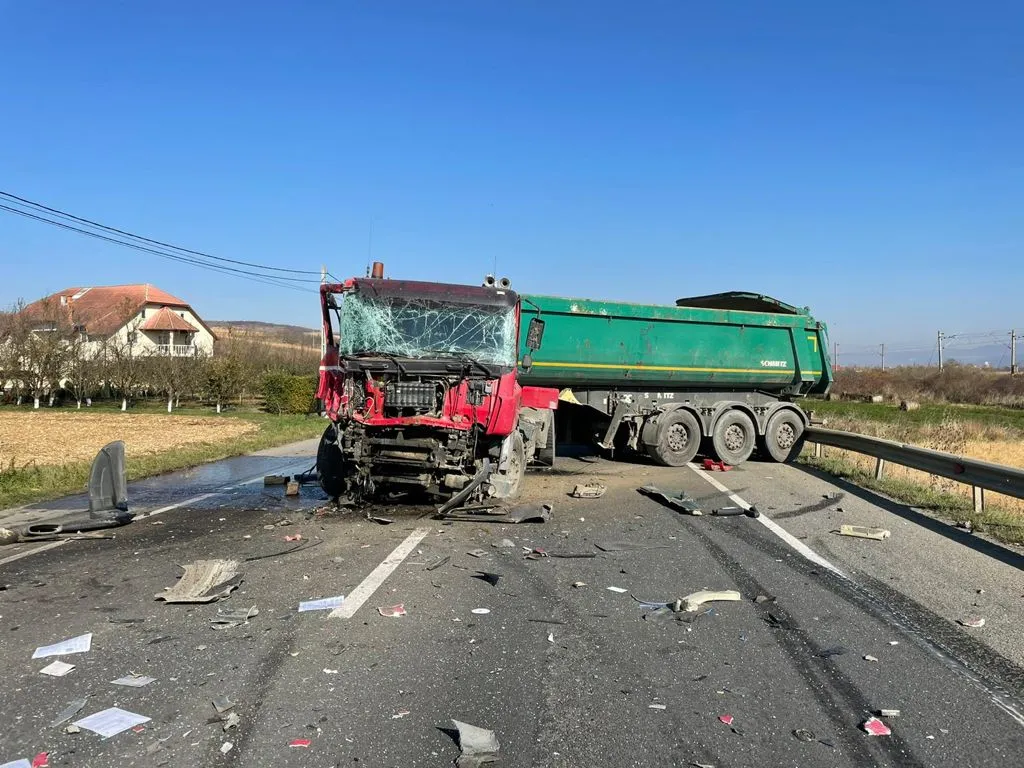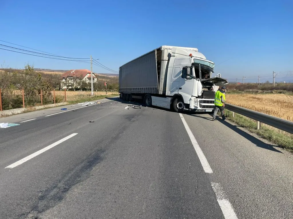 Un accident între două mașini de mare tonaj s-a produs miercuri, în jurul orei 13.30, între localitățile Iclod și Livada, pe DN 1C.