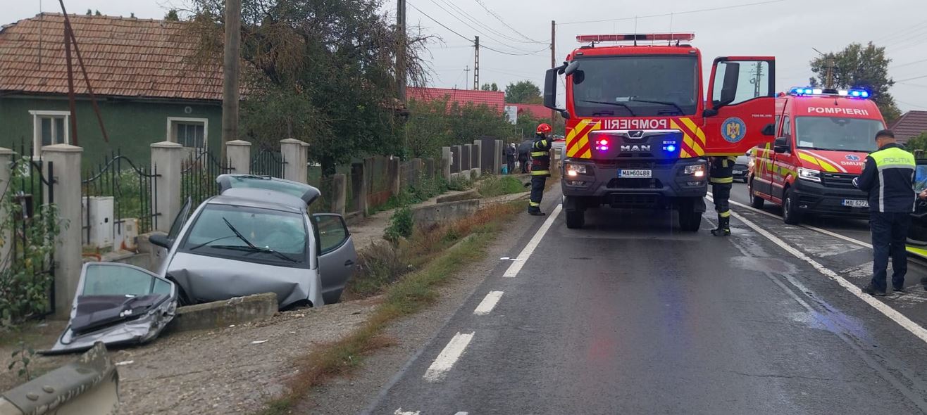 Bărbatul a fost transportat ulterior la spital pentru tratament de specialitate, iar la intervenție au luat parte o autospecială cu modul de descarcerare și o ambulanță SMURD.