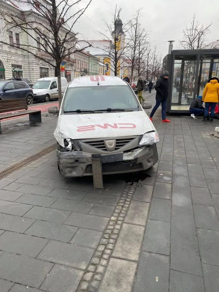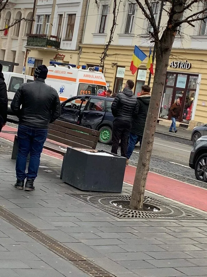 Unul dintre șoferi a ajuns pe trotuar și a lovit un chioșc montat pe zona pietonală. Este vorba despre chioșcurile comandate de primarul Emil Boc și care au costat la acea vreme cât o garsonieră.