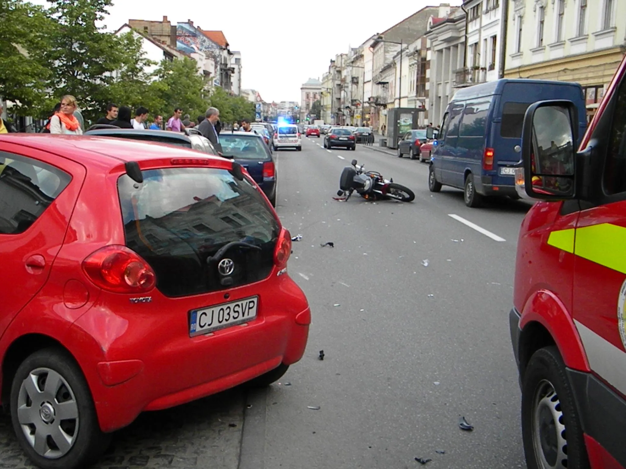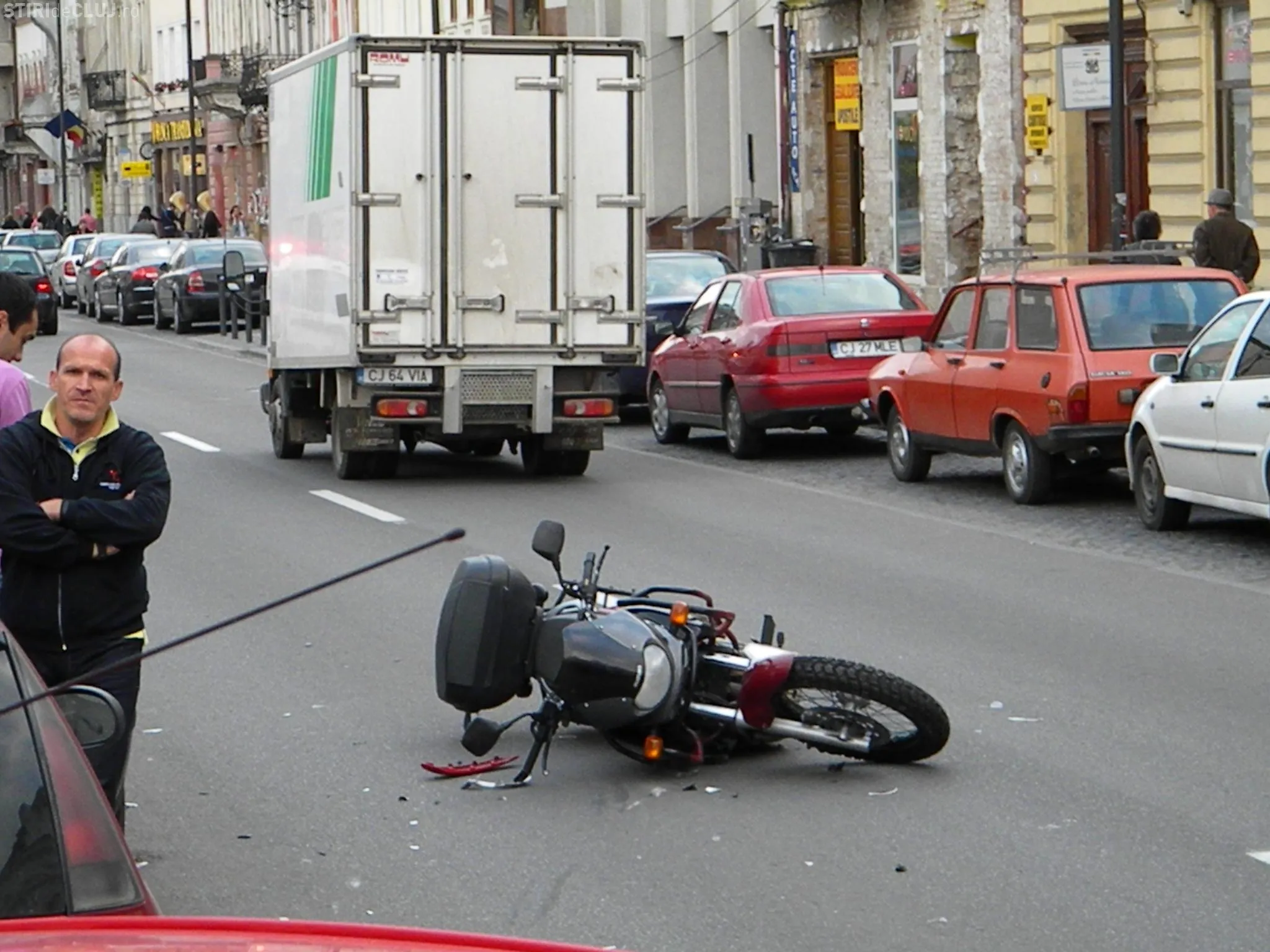 O șoferiță nu a fost atentă la schimbarea benzii de mers și a lovit în plin un motociclist care circula regulamentar. ”A schimbat banda pentru a intra în parcare. A trecute de pe o bandă pe alta și de acolo a vrut să parcheze, dar nu a mai apucat pentru că l-a lovit pe motociclist”, a relatat un martor la acest incident.