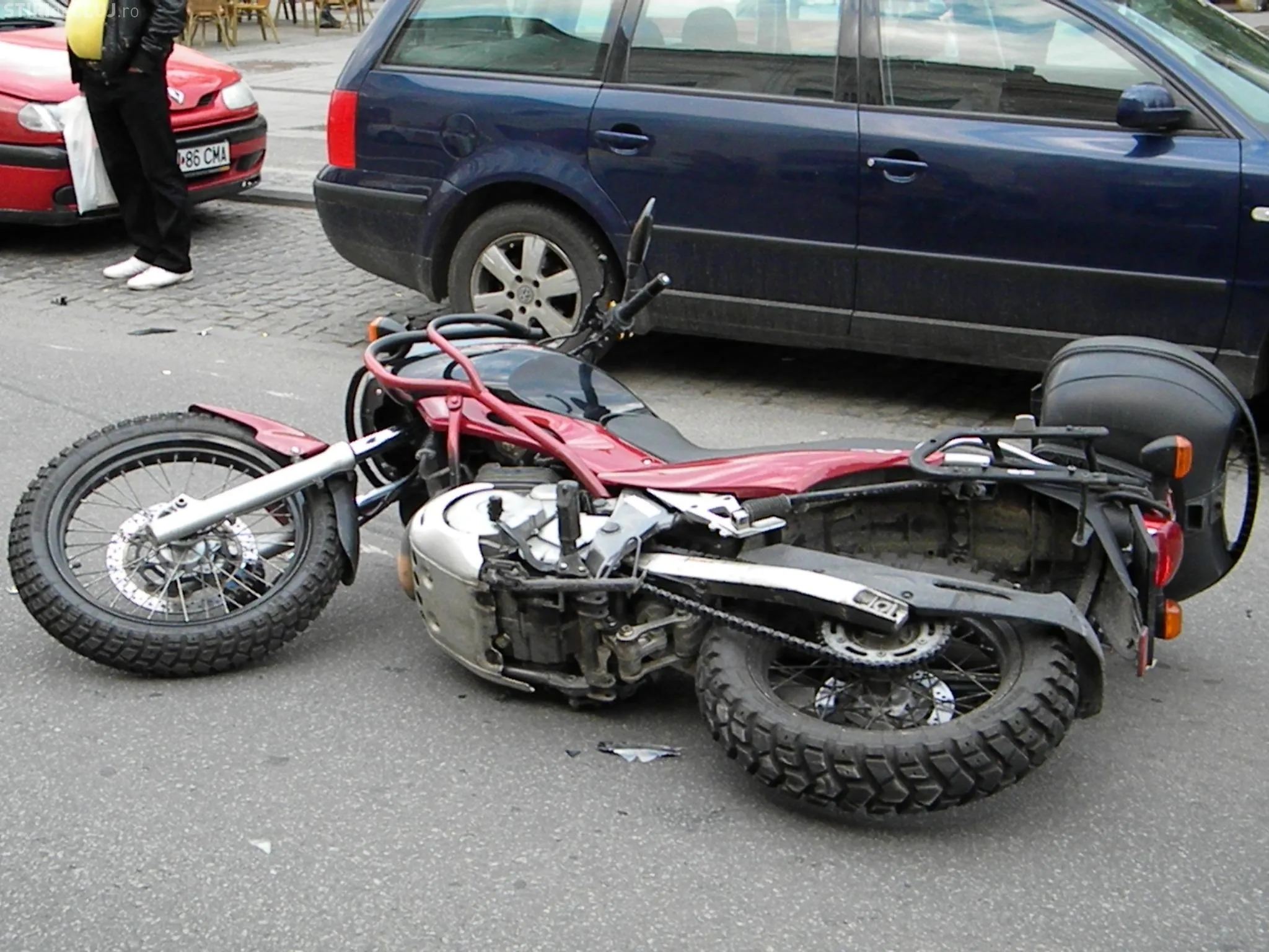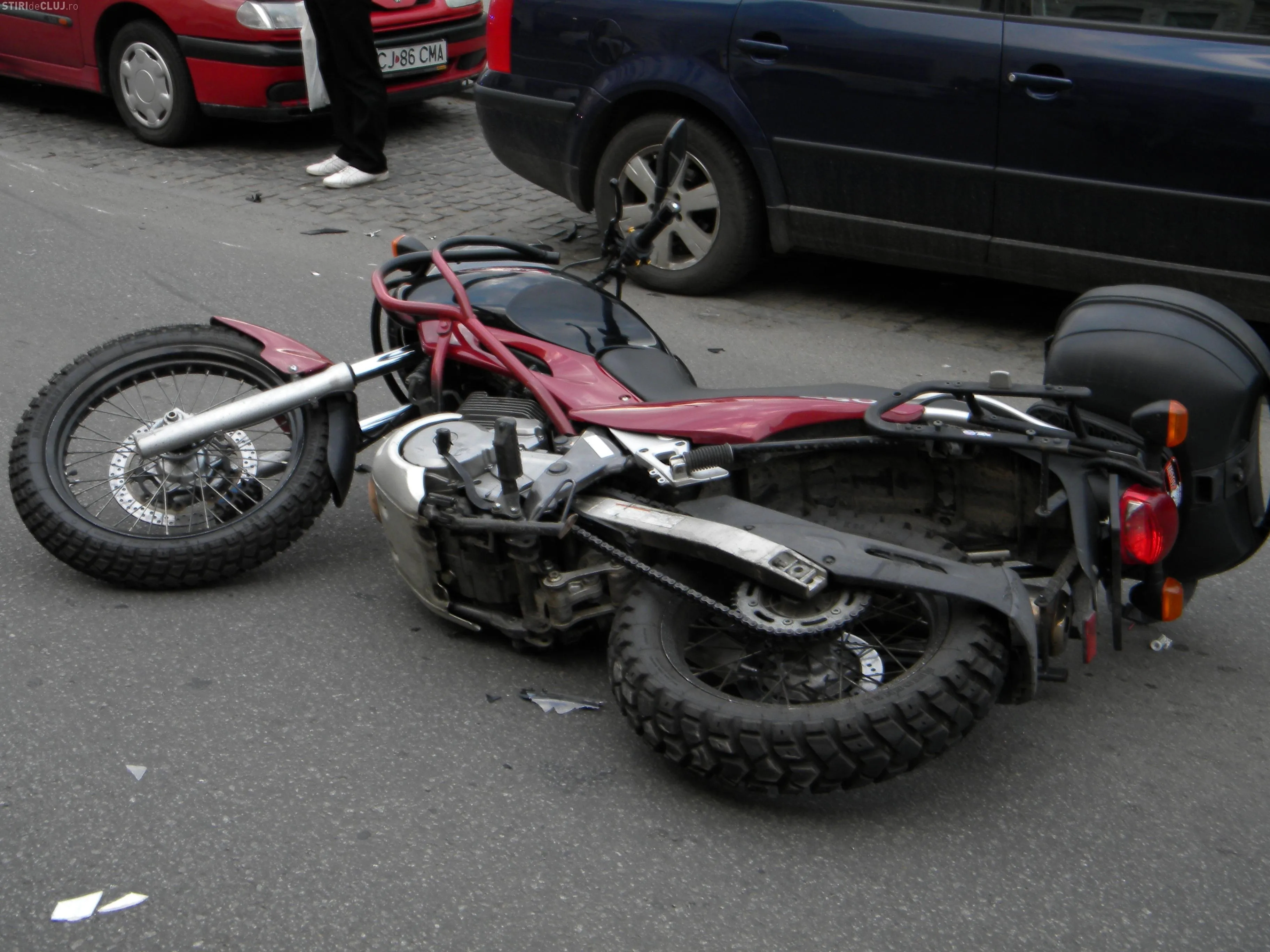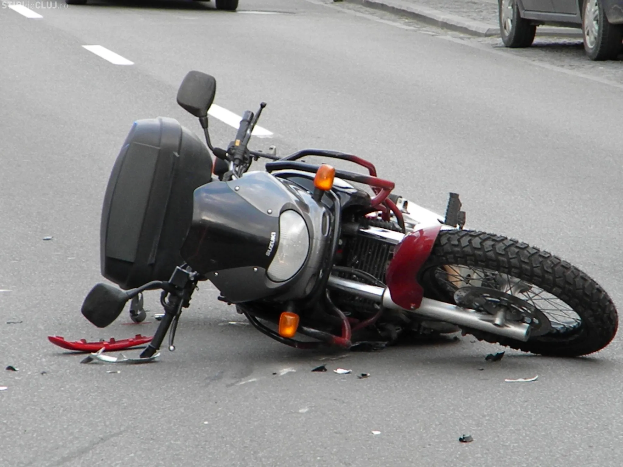 Motocicleta a mai mers câțiva metri, iar motociclistul a fost aruncat pe asfalt. Autoturismul are partea din față avariată.