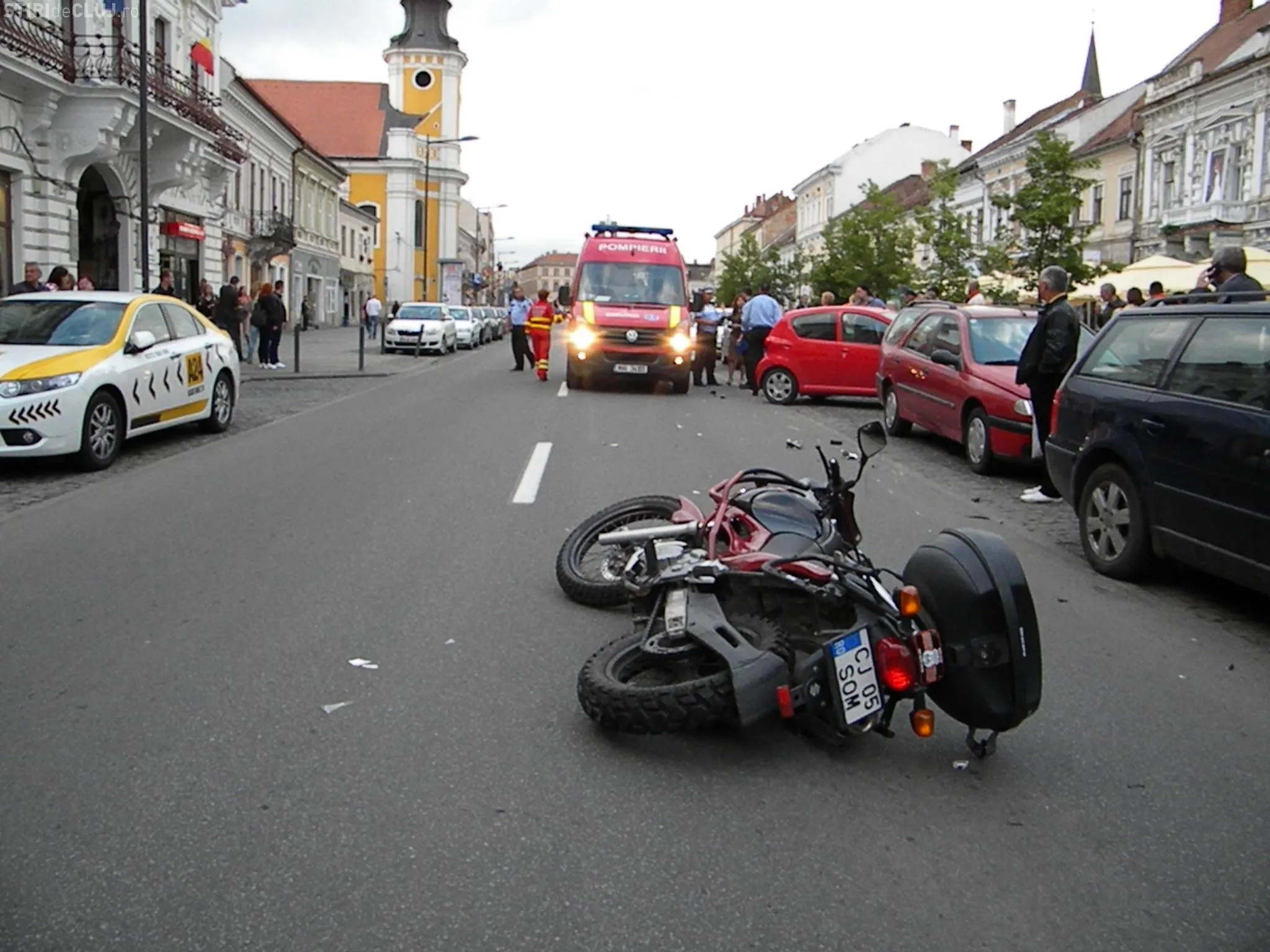 Accident pe Eroilor! Motociclist spulberat de o șoferiță neatentă - FOTO