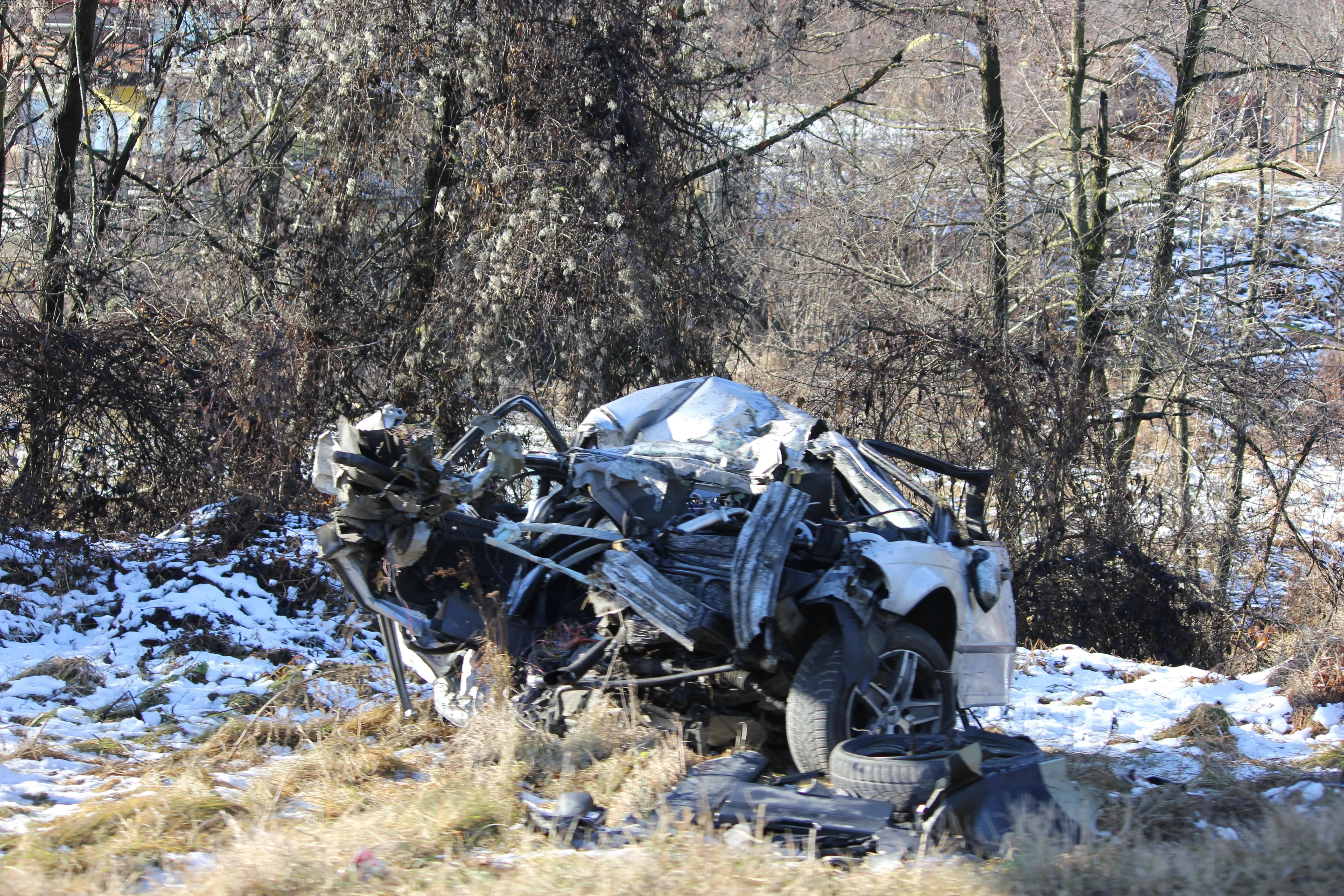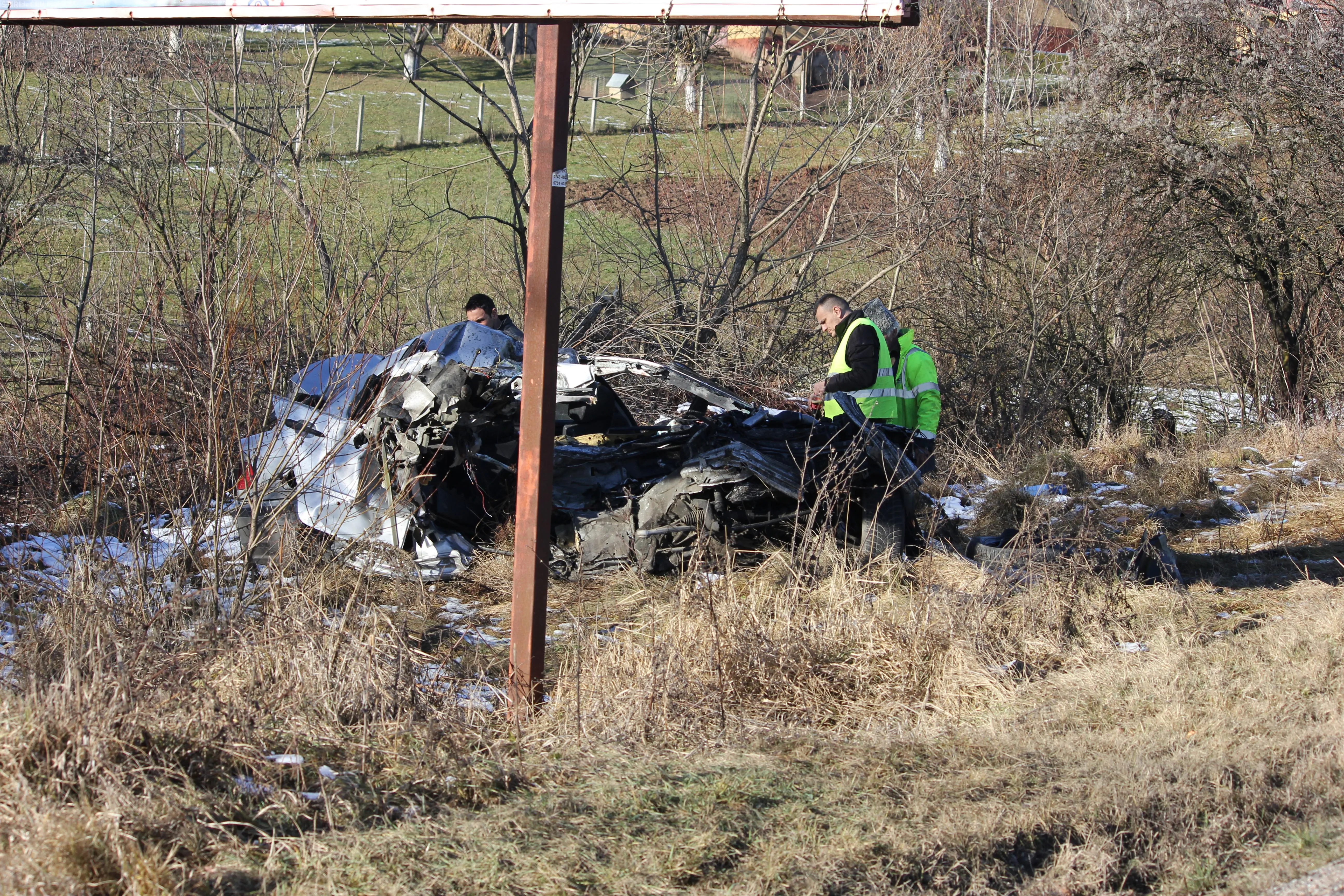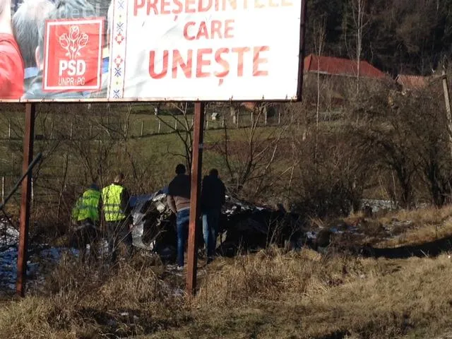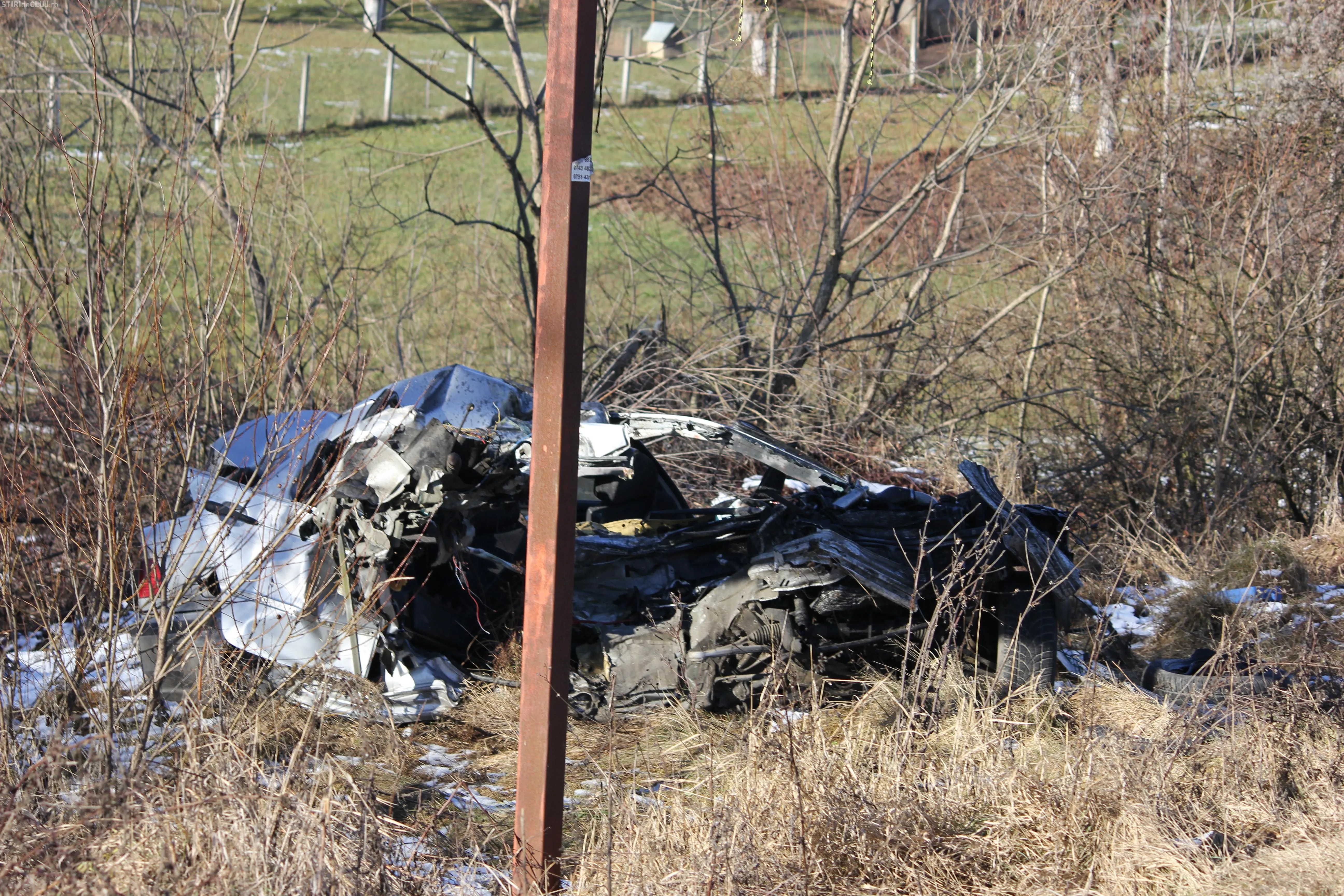 Impactul a fost devastator, BMW -ul fiind proiectat în afara carosabilului.