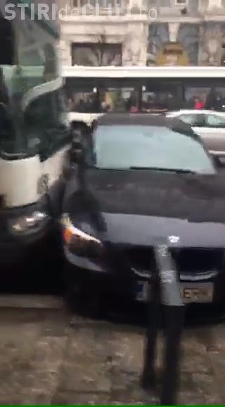 Accident pe Memorandumului! BMW lovit în plin. A virat în fața autobuzului - VIDEO