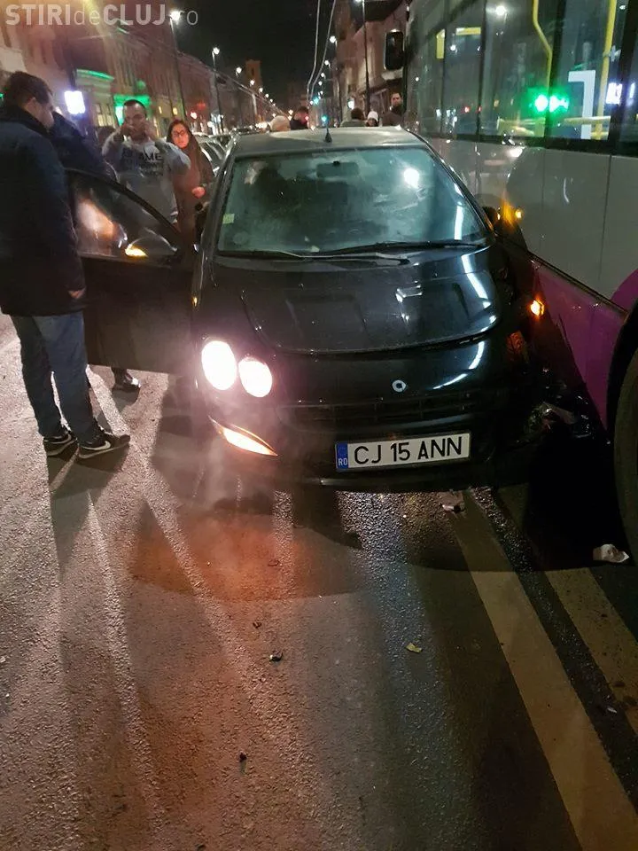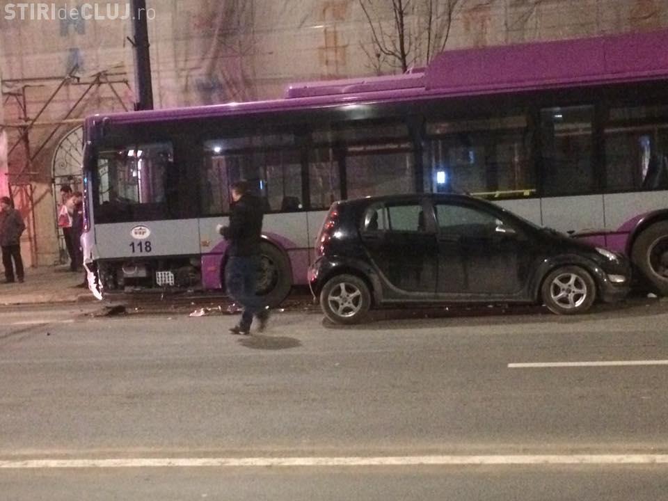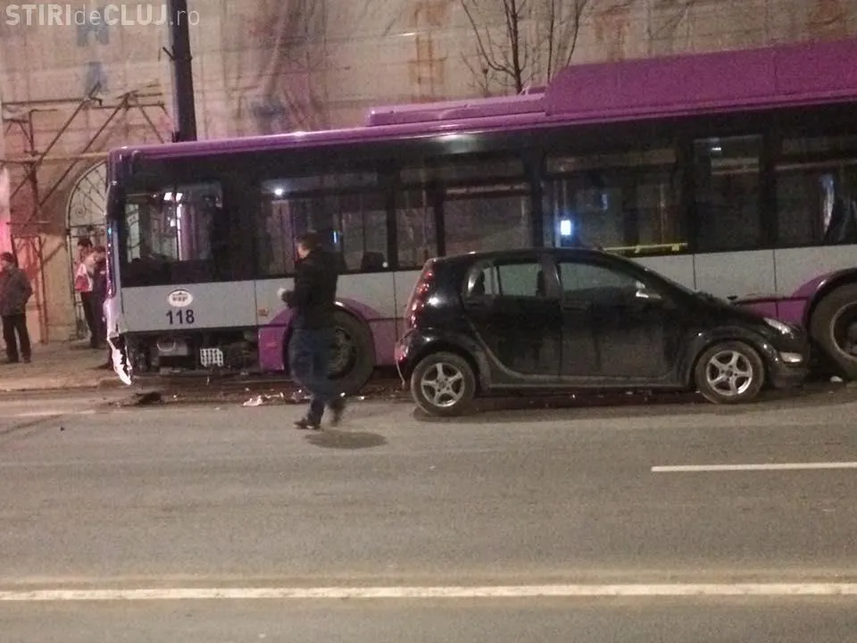 Un troleibuz mov a fost avariat de un Smart, miercuri seara, pe strada Memorandumului.