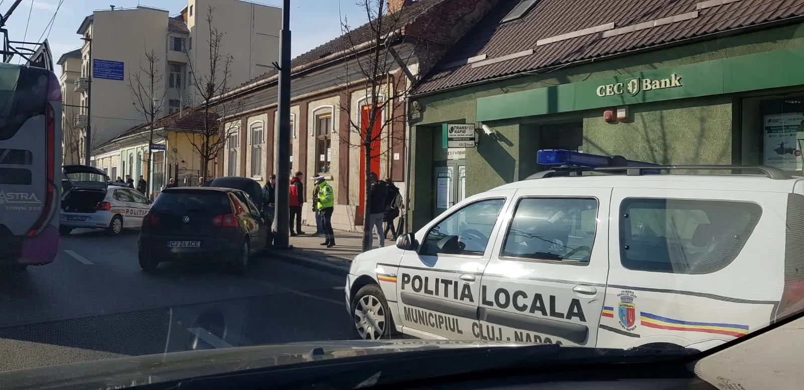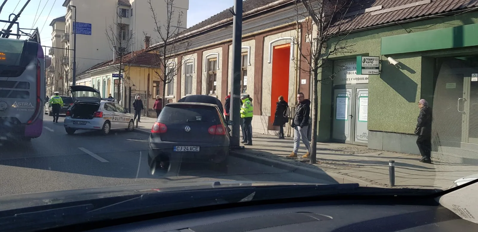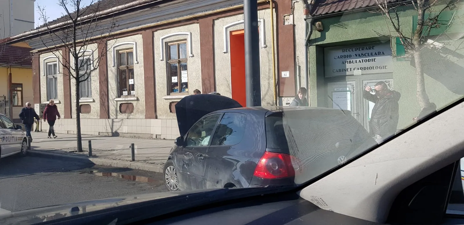 Un șofer a lovit un stâlp, fiind aproape de a se urca pe trotuar cu mașina. Se pare că șoferul care a intrat în stâlp a fost lovit în partea stângă de un alt autoturism, fiind aruncat pe trotuar.