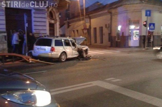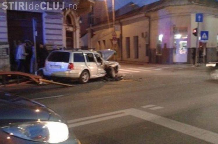 Conform Poliției, șoferul unui autoturism a virat stânga la intersecția cu strada Iuliu Hațieganu și nu a acordat prioritate unei alte mașini. Prima mașină a fost lovită și aruncată pe trotuar, unde a rupt trei stâlpișori metalici și un indicator rutier.