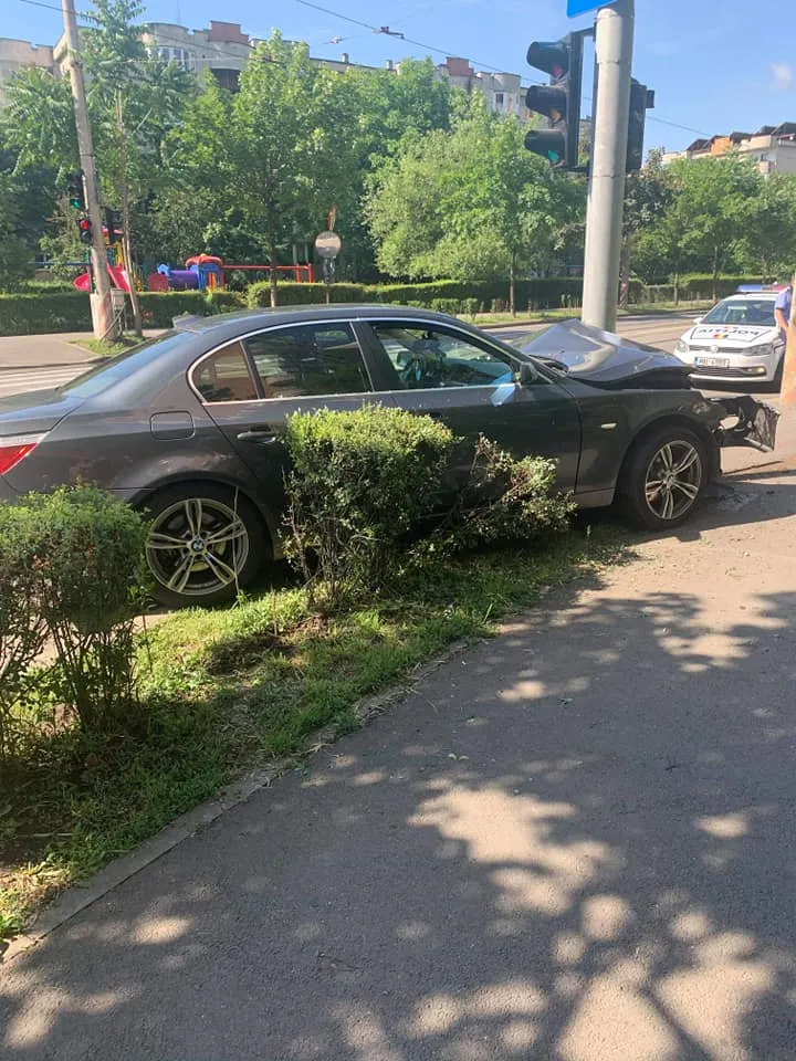 Accident pe Plopilor! Un BMW, singur pe drum, a intrat într-un stâlp - FOTO