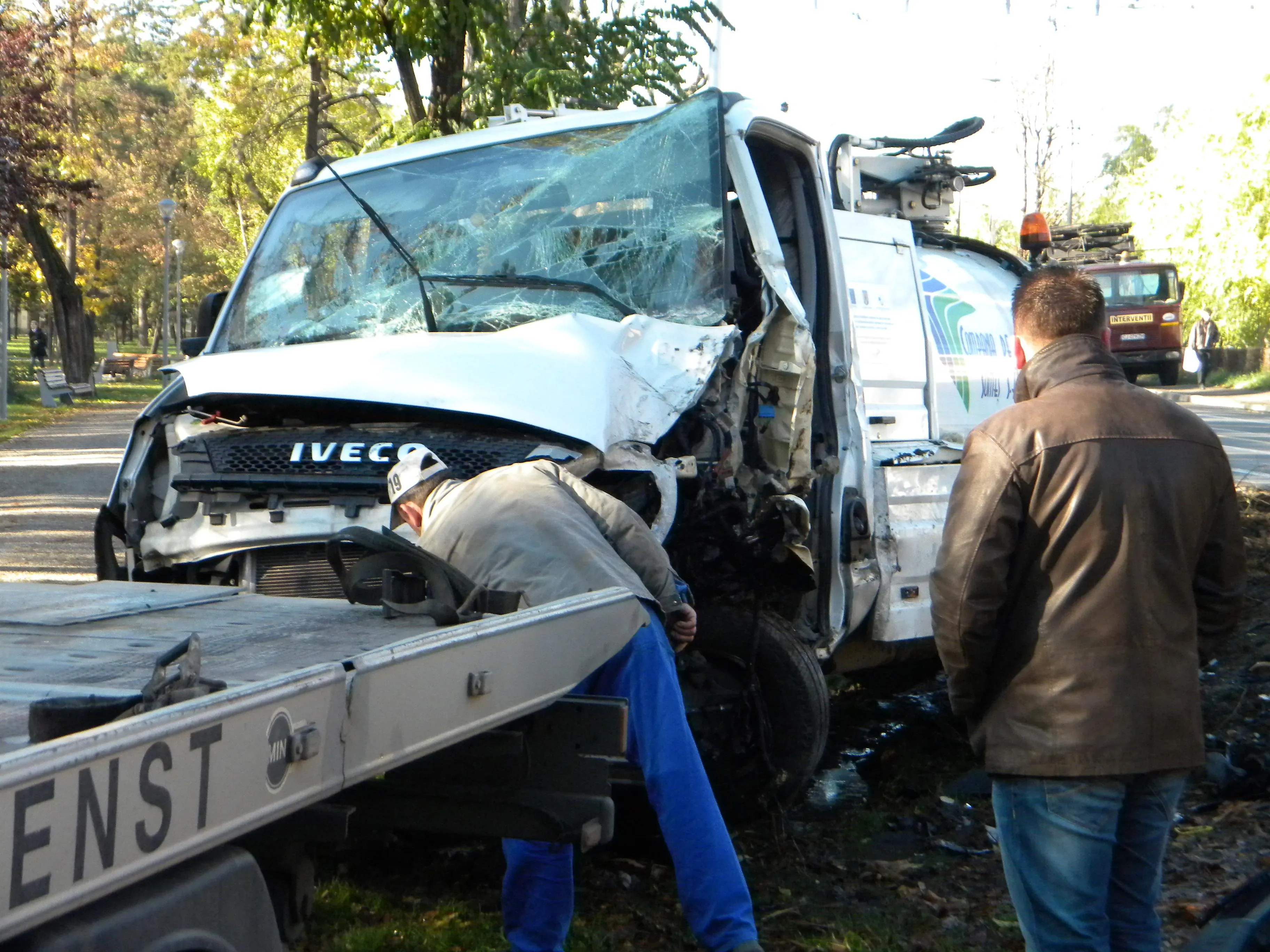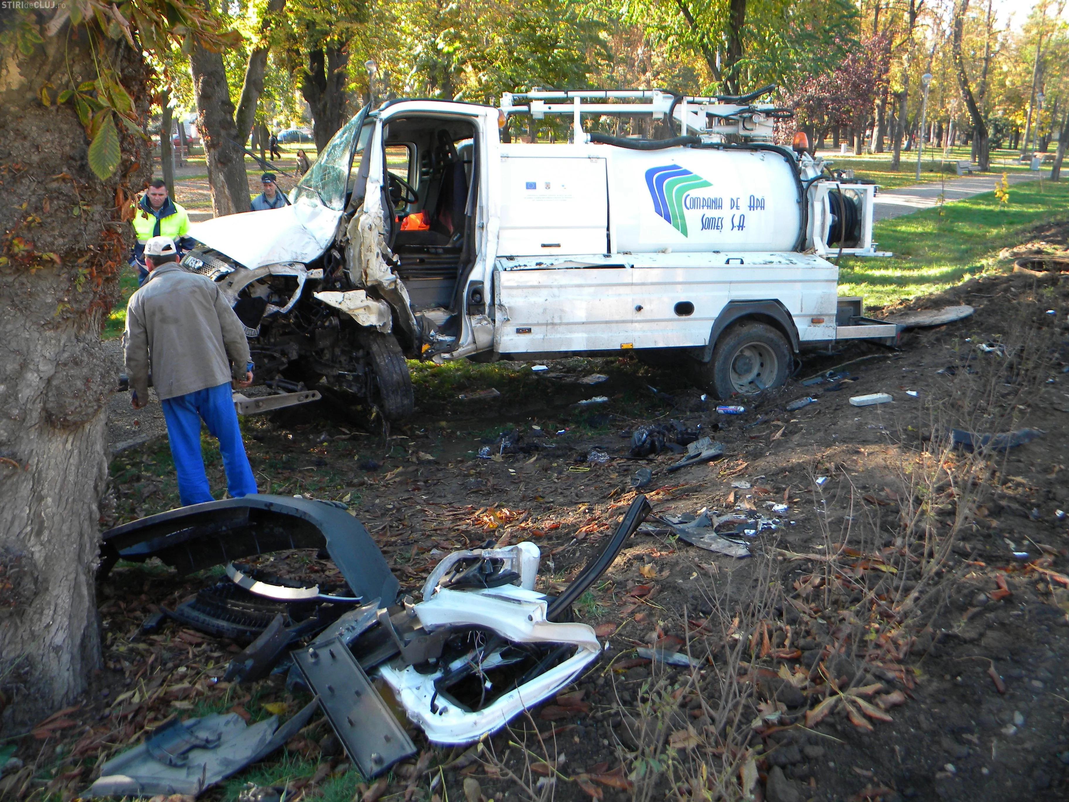 Accident pe Splaiul Independenței! O mașină a Companiei de Apă Cluj a ”deraiat” în Parcul Central - VIDEO și FOTO