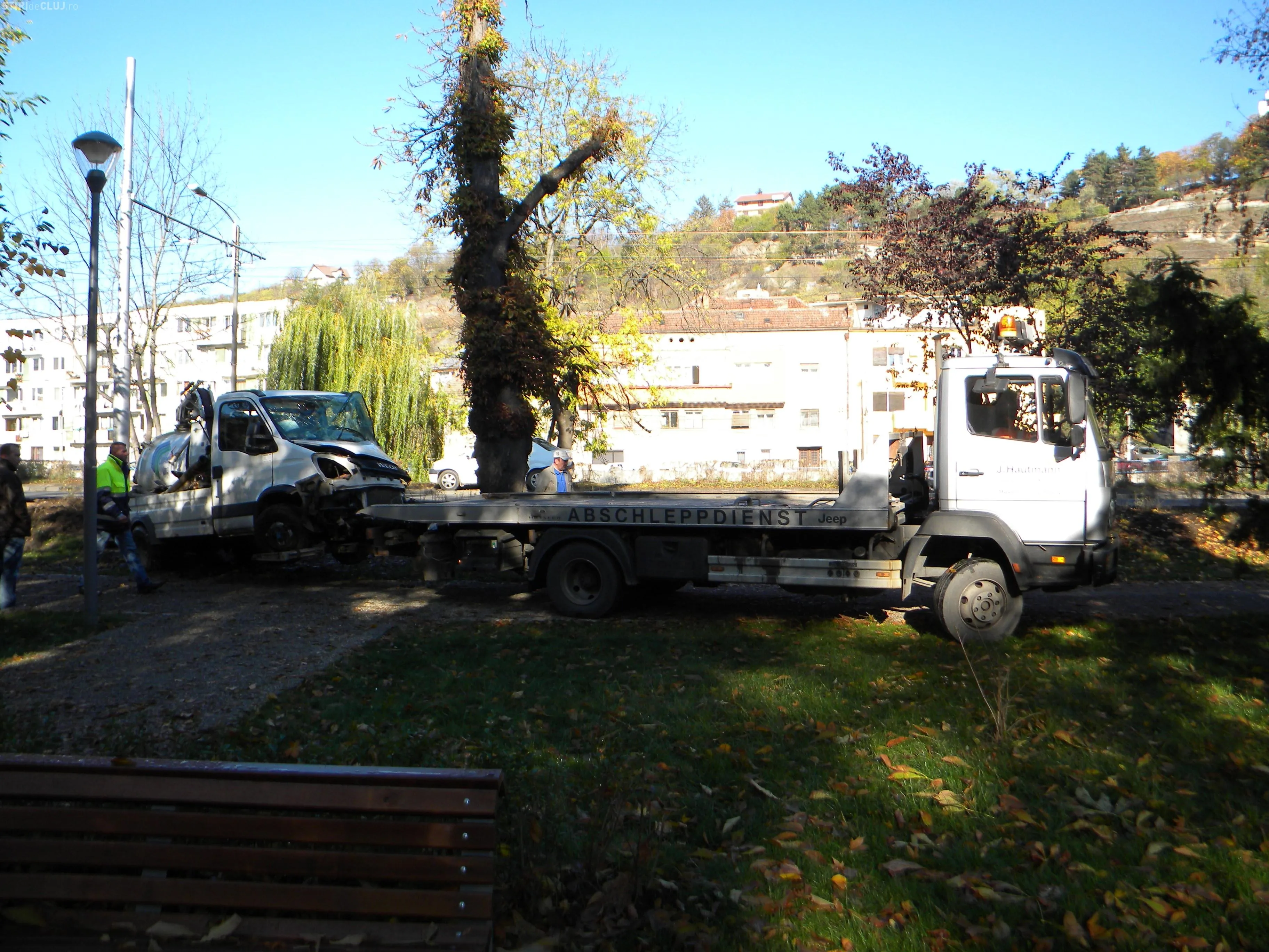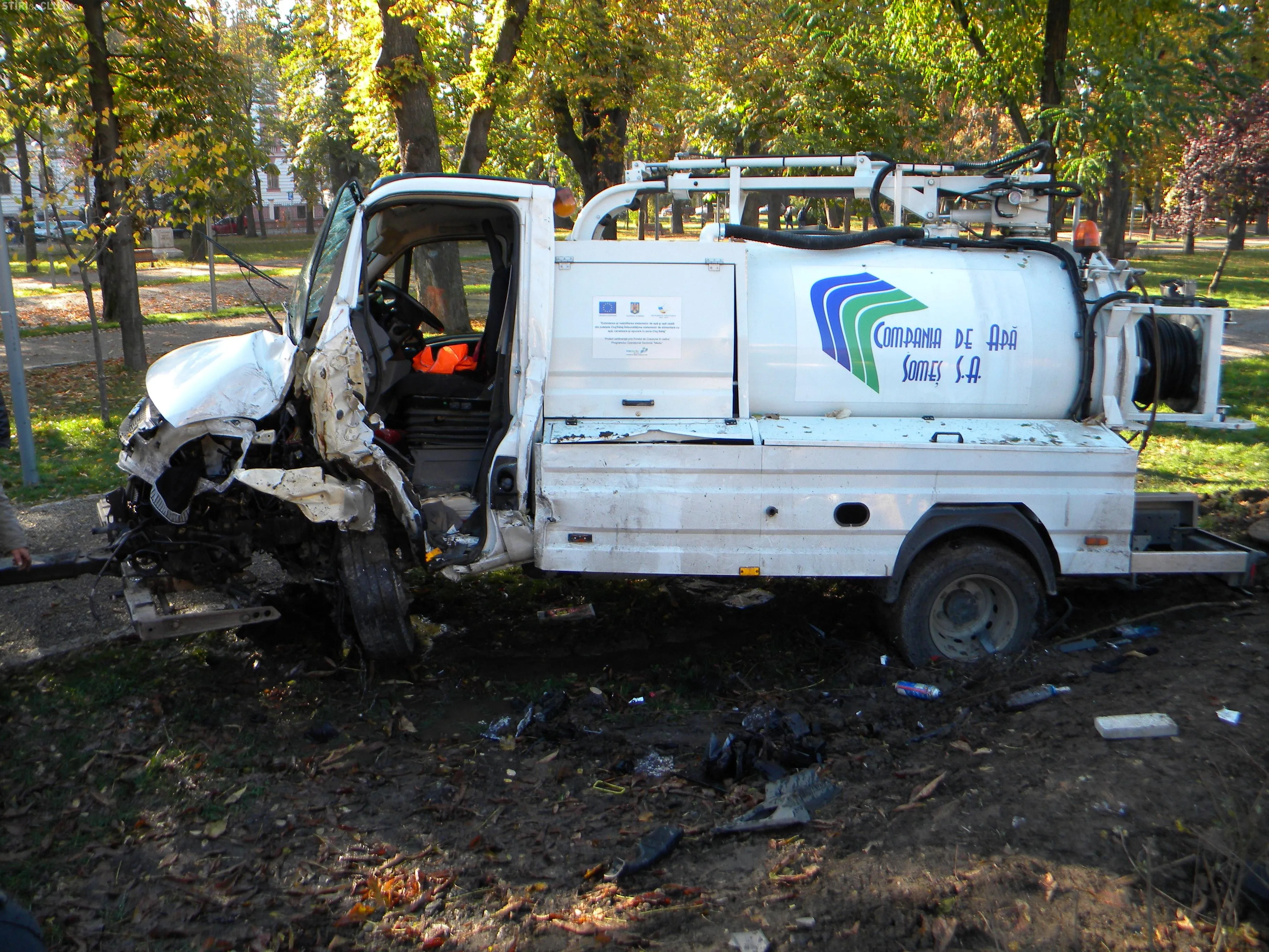 Mașina Companiei de Apă Someș a fost remorcată din zona accidentului în jurul orei 10.00.