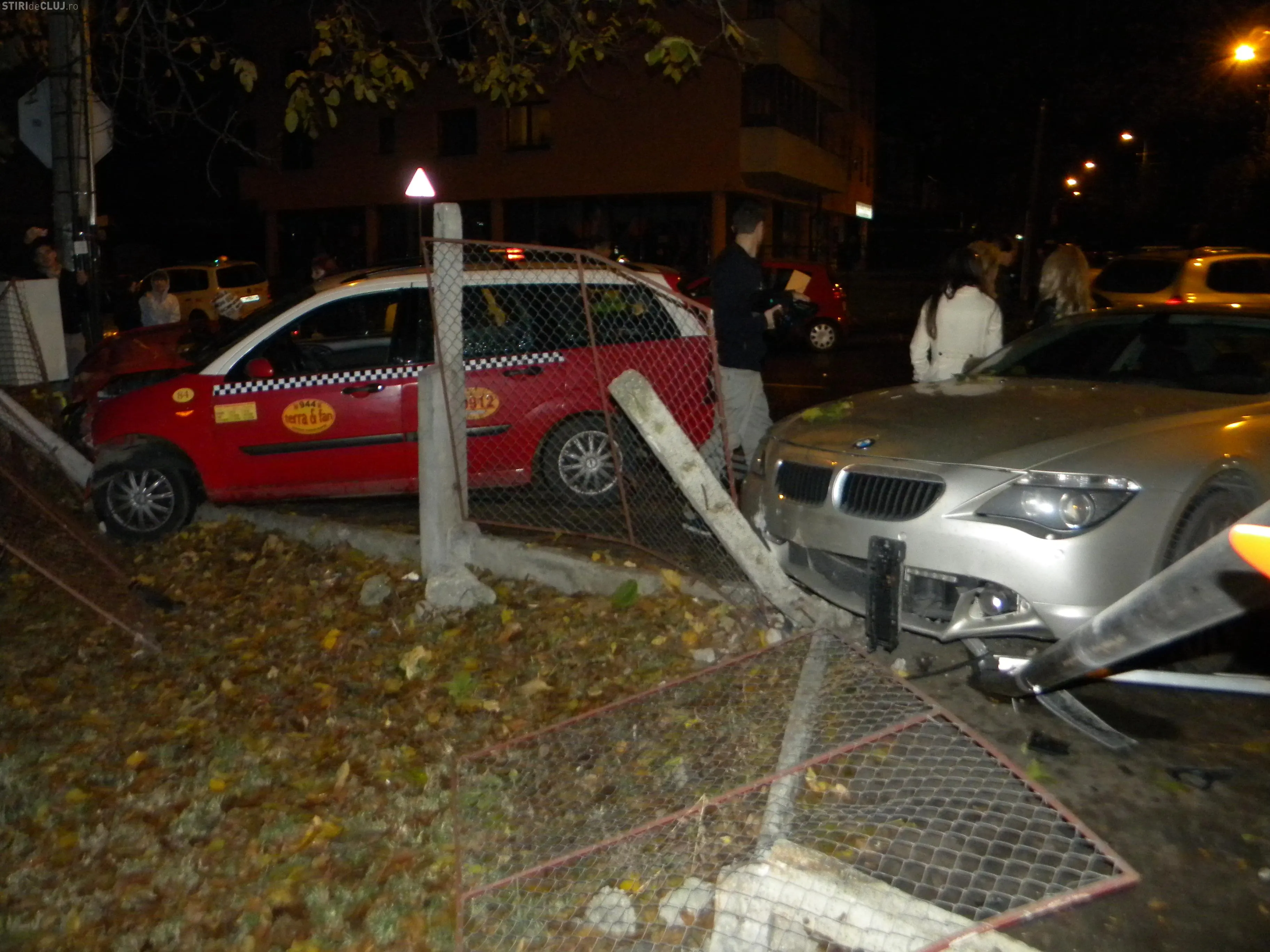 Un autovehicul marca BMW care circula pe strada Constantin Brâncoveanu, la intersecţia cu strada Septimiu Albini, nu a acordat prioritate și a intrat în coliziune cu un taximetru. Al doilea autoturism a ricoşat în gardul unei clădiri, lovind o consolă de gaz. Din fericire, nu au existat avarii la teava de gaz, care ar fi putut duce la o catastrofă.